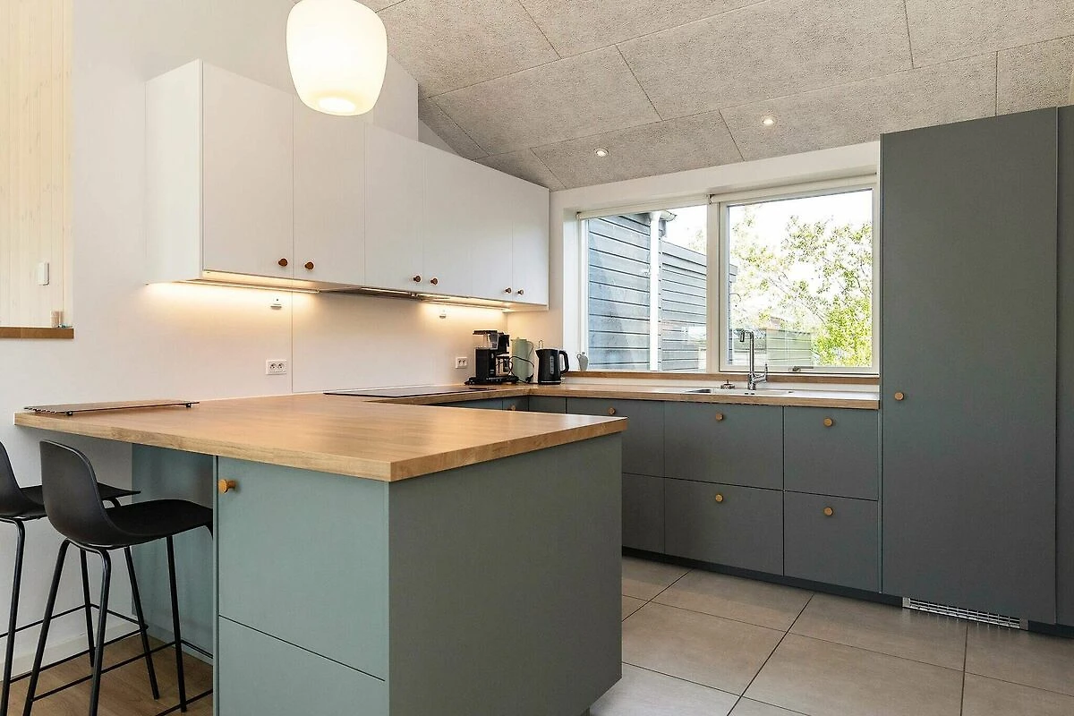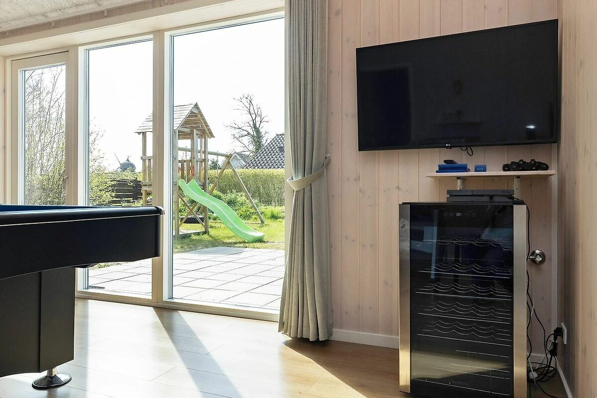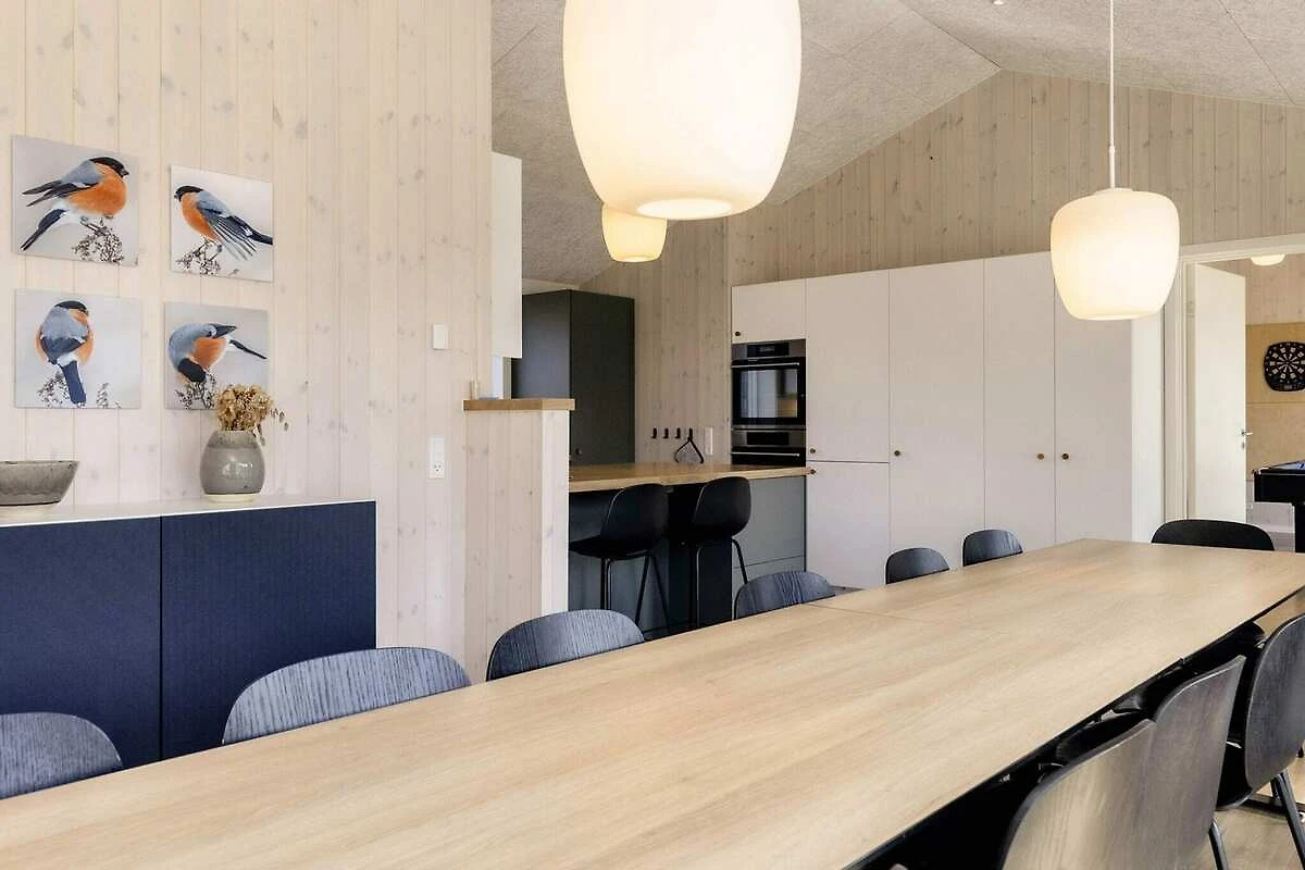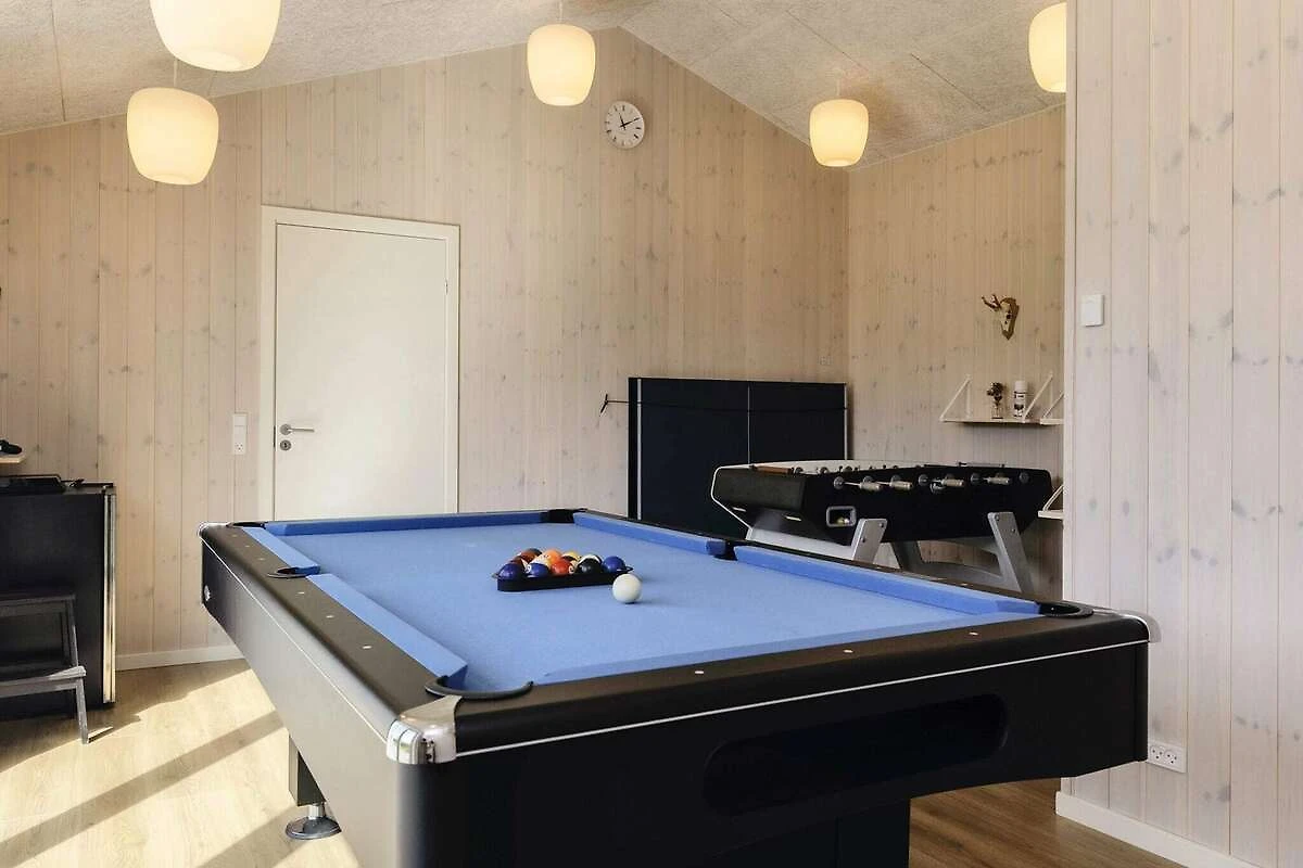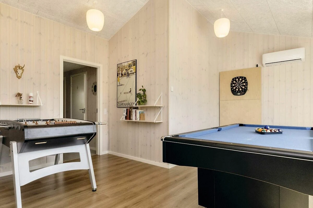 Dieses moderne Ferienhaus in Øster Hurup lädt vom ersten Moment an zum Entspannen und Erholen ein. Mit seinem privaten Whirlpool und der entspannenden Sauna ist es der ideale Ort zum Entspannen nach einem Tag am Strand oder einem Städtetrip. Das geräumige und helle Haus verbindet modernen Stil mit zahlreichen Aktivitäten und ist somit ideal für Familien und Freundesgruppen. Der offene Küchen- und Essbereich geht direkt in das Wohnzimmer über und schafft so einen einladenden Raum für Mahlzeiten, gemeinsames Lachen und gemütliche Abende. Treten Sie hinaus auf die große Terrasse, die zum Essen im Freien oder zum Genießen der frischen Meeresbrise möbliert ist. Unterhaltung steht im Mittelpunkt dieses Hauses: Ein eigener Aktivitätsraum bietet Billard, Tischtennis, Tischfußball, Darts und eine PlayStation 4. Draußen können sich die Kinder auf Schaukeln, Spielturm und Trampolin vergnügen (Nutzung nur auf eigenes Risiko). Im Sommer sorgt eine Außendusche für erfrischende Abkühlung. Mit fünf Doppelzimmern, von denen vier auch als Einzelzimmer genutzt werden können, und einem zusätzlichen Zimmer mit vier Kojen in zwei Etagenbetten bietet das Haus bequem Platz für größere Familien oder Gruppen. Drei Badezimmer, darunter eines mit Whirlpool und Sauna, sorgen für Komfort. Moderne Annehmlichkeiten wie Waschmaschine, Trockner, Geschirrspüler und eine Ladestation für Elektroautos machen Ihren Aufenthalt noch angenehmer. Die Lage an einer ruhigen Straße im Zentrum von Øster Hurup könnte nicht besser sein: nur 150 m von Geschäften und Restaurants und nur 450 m vom kinderfreundlichen Strand entfernt. Ob Sie hier entspannen, Spaß mit der Familie haben oder beides – dieses Ferienhaus bietet alles. Keine Vermietung an Jugendgruppen erwünscht!