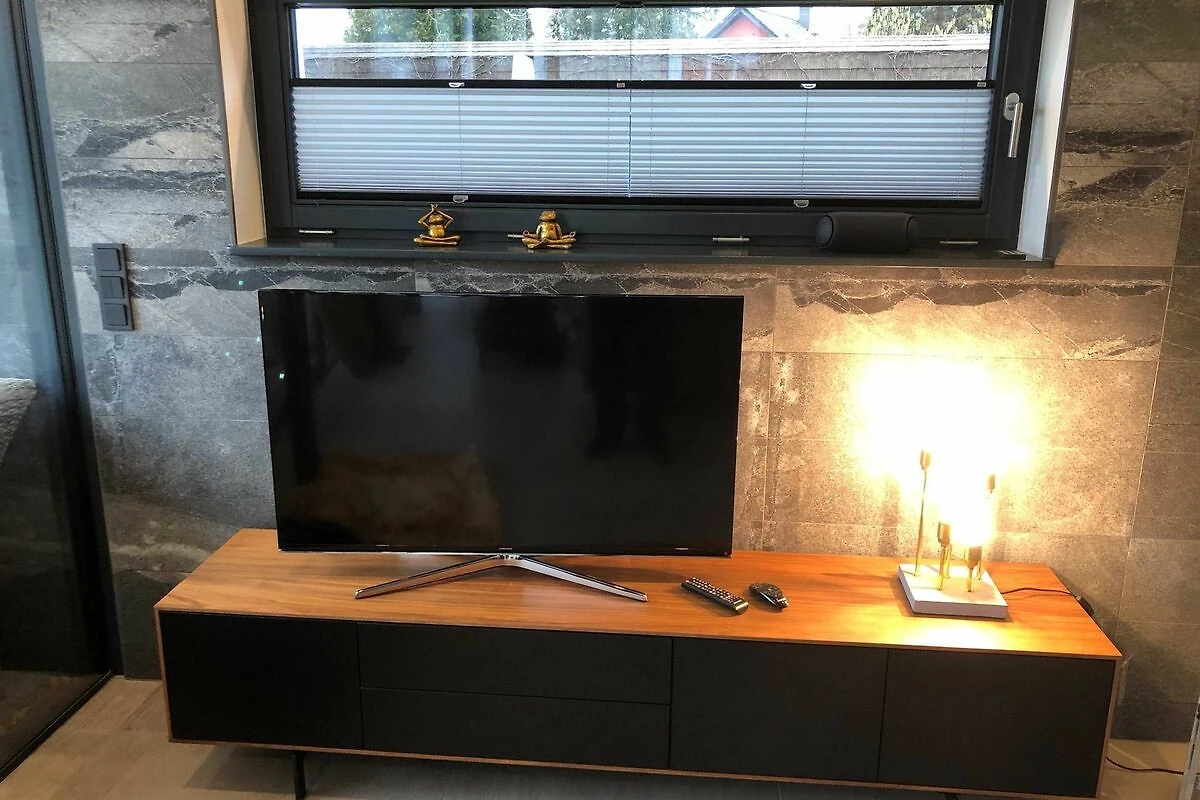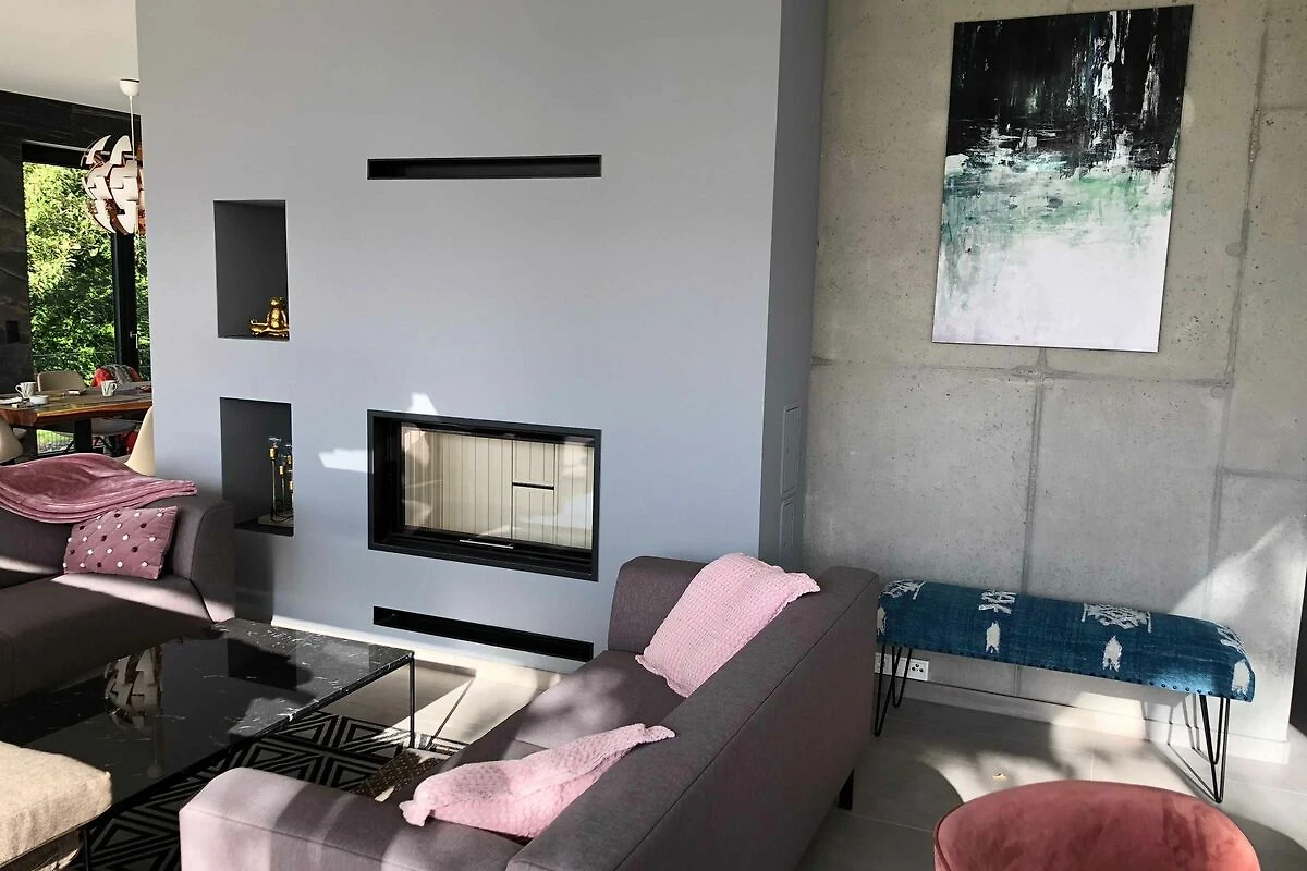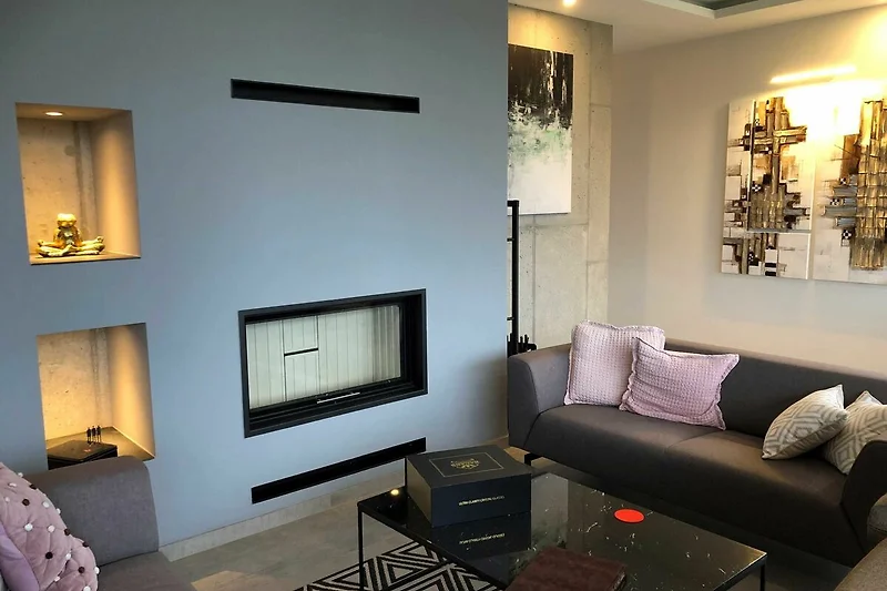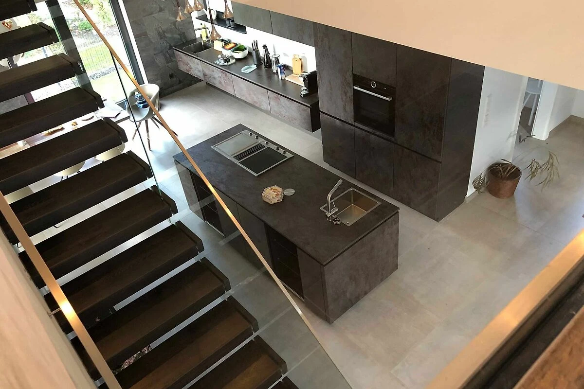 Der ca. 80m² grosse Wohn-, Ess- und Küchenbereich verfügt über einen Kamin sowie eine hochwertige Keramikküche mit Teppanyaki Grill und Nesspressomachine.