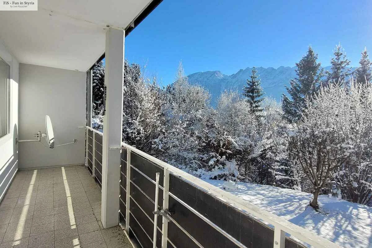 Bad Mitterndorf, Ortsteil Neuhofen, 810 mNN. Die Ferienwohnung befindet sich in einer Ferienanlage, auf einem offenen Grundstück mit Wiese und Bäumen. Die Zufahrt erfolgt über eine Nebenstrasse (asphaltiert). Im Winter sind Schneeketten empfohlen. Parkplatz auf dem Grundstück.