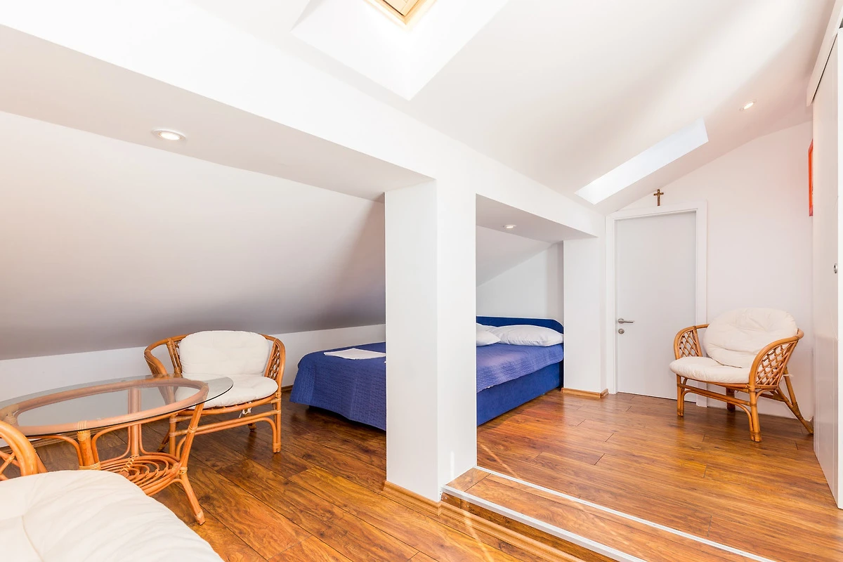 Crikvenica. Die Ferienwohnung befindet sich auf einem 300 qm grossen, geschlossenen Grundstück mit Blumen, Sträuchern und Bäumen, von einem Zaun begrenzt. Der Vermieter wohnt nur zeitweise in einem separaten Gebäude auf dem Grundstück. Die Zufahrt erfolgt direkt von der Hauptstrasse (asphaltiert). Parkplatz auf dem Grundstück.
