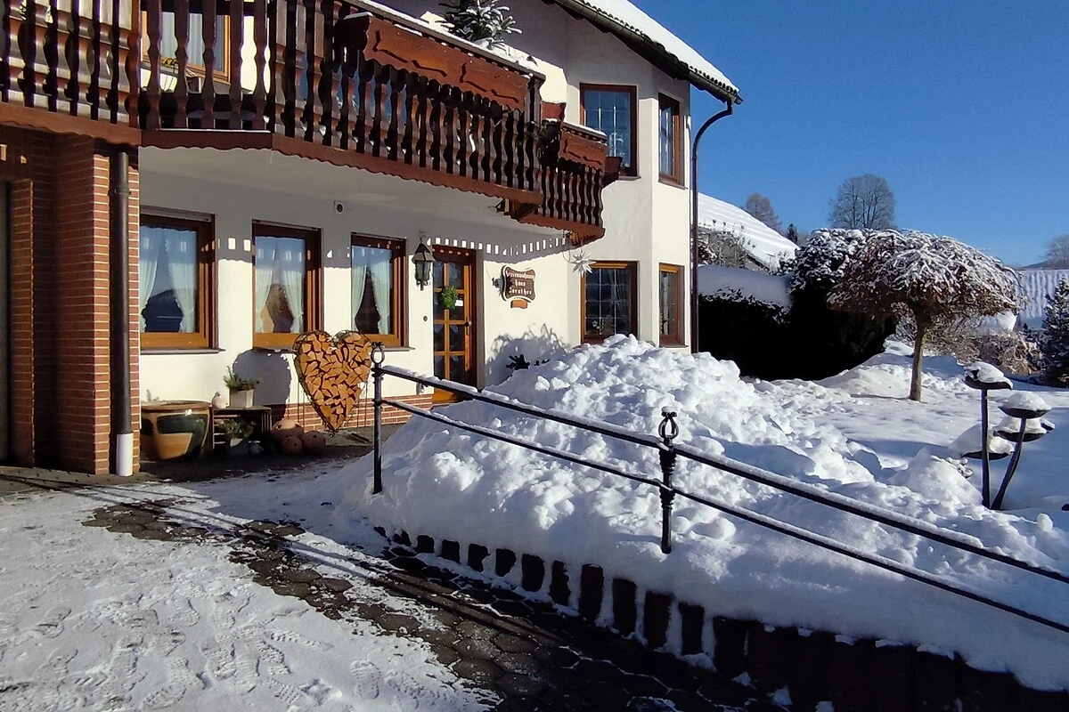 Die Ferienwohnung befindet sich als Einliegerwohnung in unserem Einfamilienhaus in ruhiger Südhanglage direkt am Waldrand. Die Wohnung verfügt über einen eigenen Hauseingang und eine überdachte Sonnenterrasse mit Holzgartenmöbeln. Das Ortszentrum von Winterberg-Züschen ist 5 Gehminuten entfernt. Wanderwege beginnen direkt vor der Haustür. Die Ferienwohnung selbst verfügt über ein Wohn-Esszimmer, ein Schlafzimmer, eine Küche und ein Badezimmer.