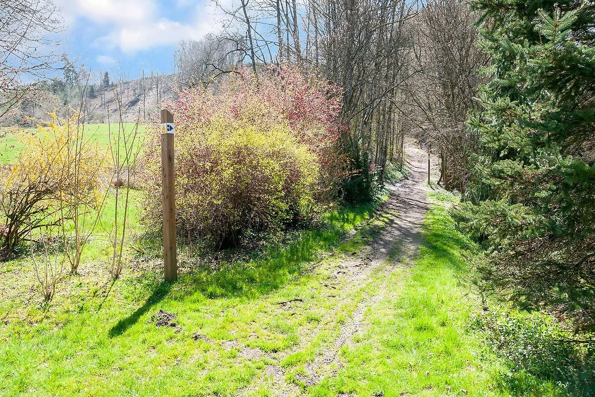 Viel Natur in der Umgebung. Gut zum Wandern oder Mountainbiken. Wirklich alles drin. Sogar eine Waschmaschine mit Waschmittel und einen Trockner. Die Betten sind bei der Ankunft gemacht. Es gibt Handtücher, Morgenmantel, Hausschuhe, Tee, Kaffee, ... Viele Möglichkeiten, draußen um das Haus herum zu sitzen. Freundliche Gönner.