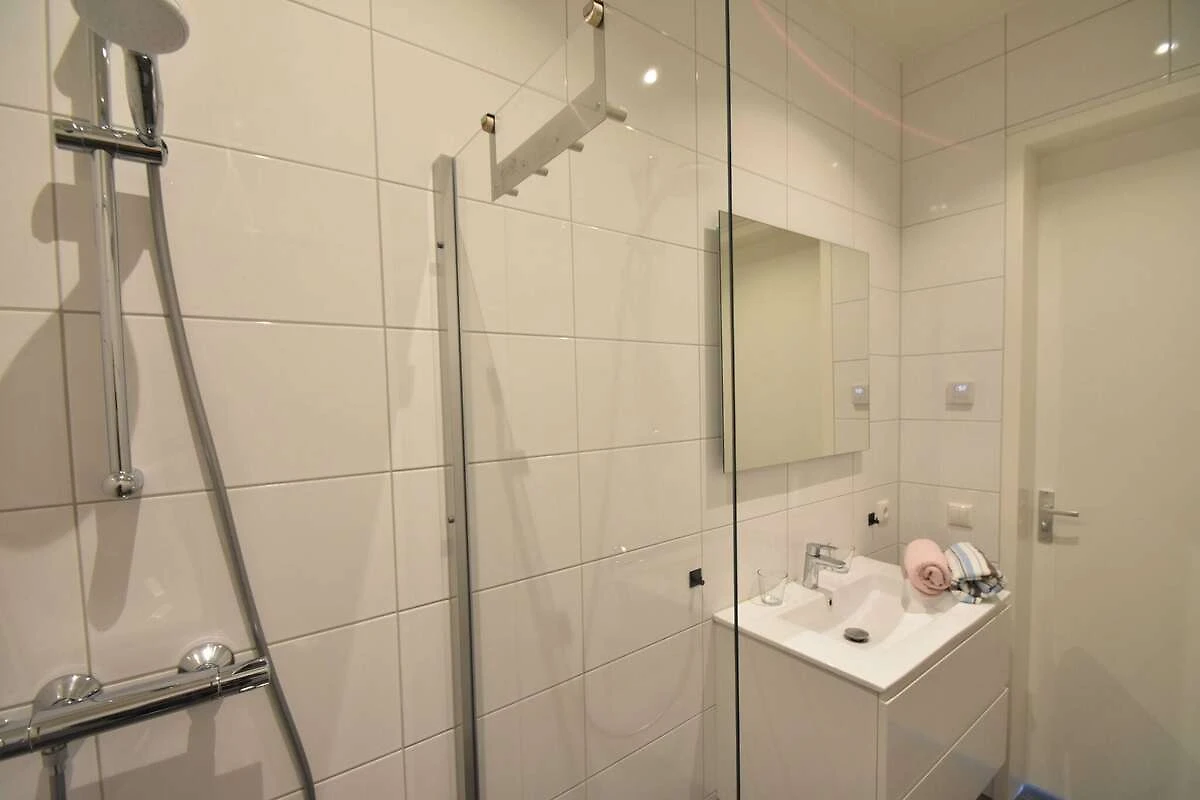 Parterre: (Eingang, Eingangshalle(Toilette), offene Küche(Kochplatte(Induktion), Wasserkocher, Dunstabzugshaube, Kaffeemaschine(cups), Kaffeemaschine(Filter), Kombi-Mikrowelle, Spülmaschine, Kühlschrank), Wohn/Esszimmer(TV, Esstisch, Sitzecke, kabelloses Musiksystem, Gasofen), Schlafzimmer(Doppelbett), Schlafzimmer(Doppelbett), Badezimmer(Dusche, Waschbecken), Badezimmer(Dusche, Waschbecken), Wirtschaftsraum(Trockner, Waschmaschine))