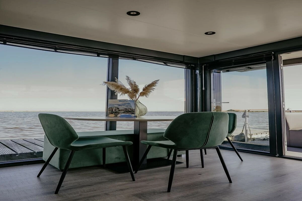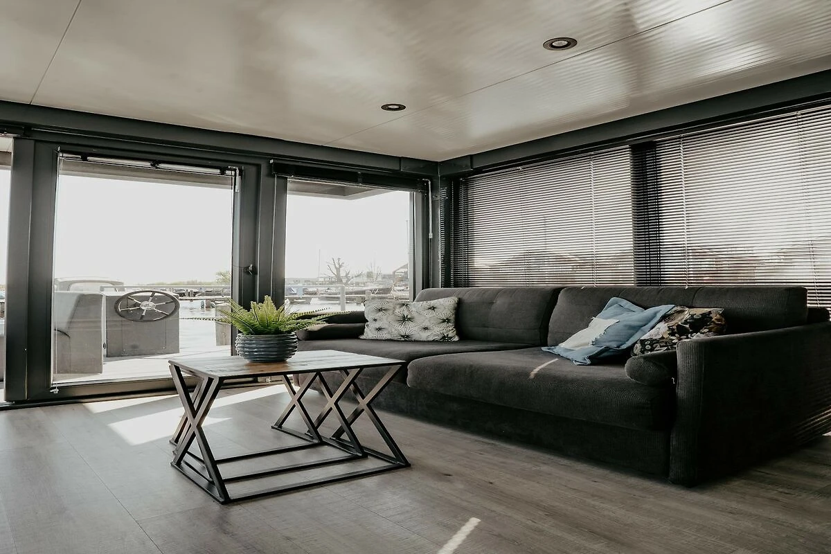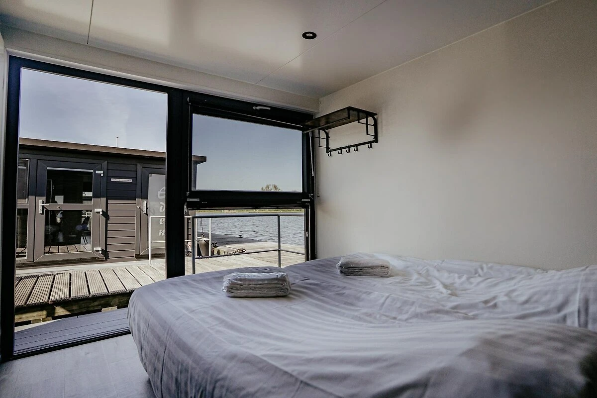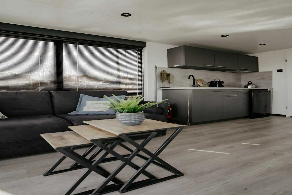Erwachen Sie von Ihrer privaten Hafenlodge zum sanften Plätschern des Wassers und genießen Sie den freien Blick auf das Uitgeestermeer. Dieses moderne Hausboot liegt am Ende des Yachthafens und bietet Ihnen maximale Ruhe. Es bietet Ihnen einen ruhigen Rückzugsort mit dem zusätzlichen Komfort von Klimaanlage und stilvoller Einrichtung. Große Fenster lassen viel Sonnenlicht herein, während die einladende Terrasse der perfekte Ort ist, um Ihren Morgenkaffee zu genießen oder einen Drink bei Sonnenuntergang zu genießen.