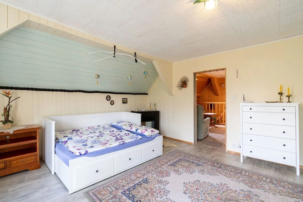 In der 1. Etage: (Wohnzimmer(Sitzecke), Schlafzimmer(Doppelbett), Schlafzimmer(Doppelbett, Bettnische für 2 Personen), Schlafzimmer(Etagenbett), Badezimmer(Badewanne, Dusche, Waschbecken, Toilette))