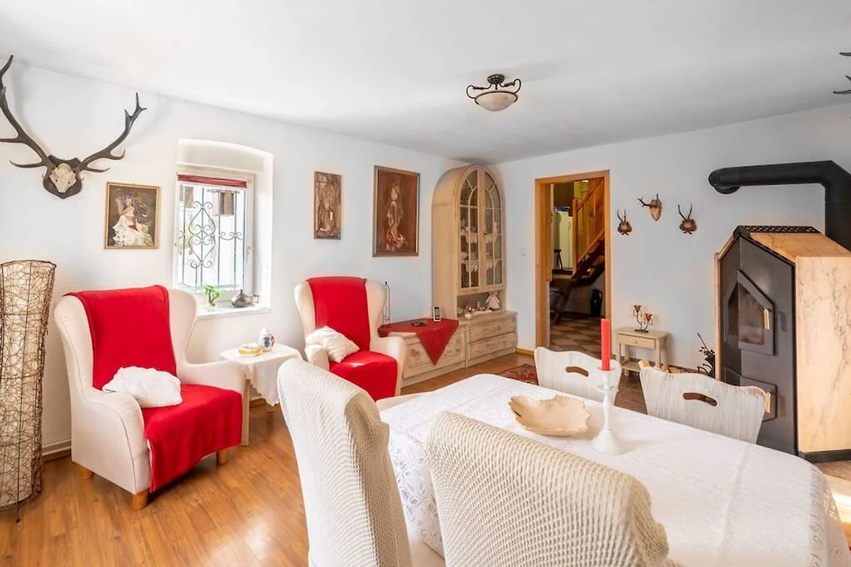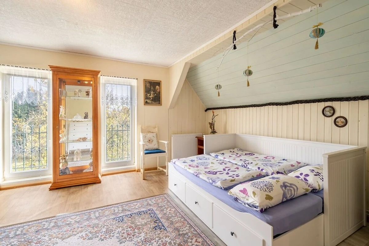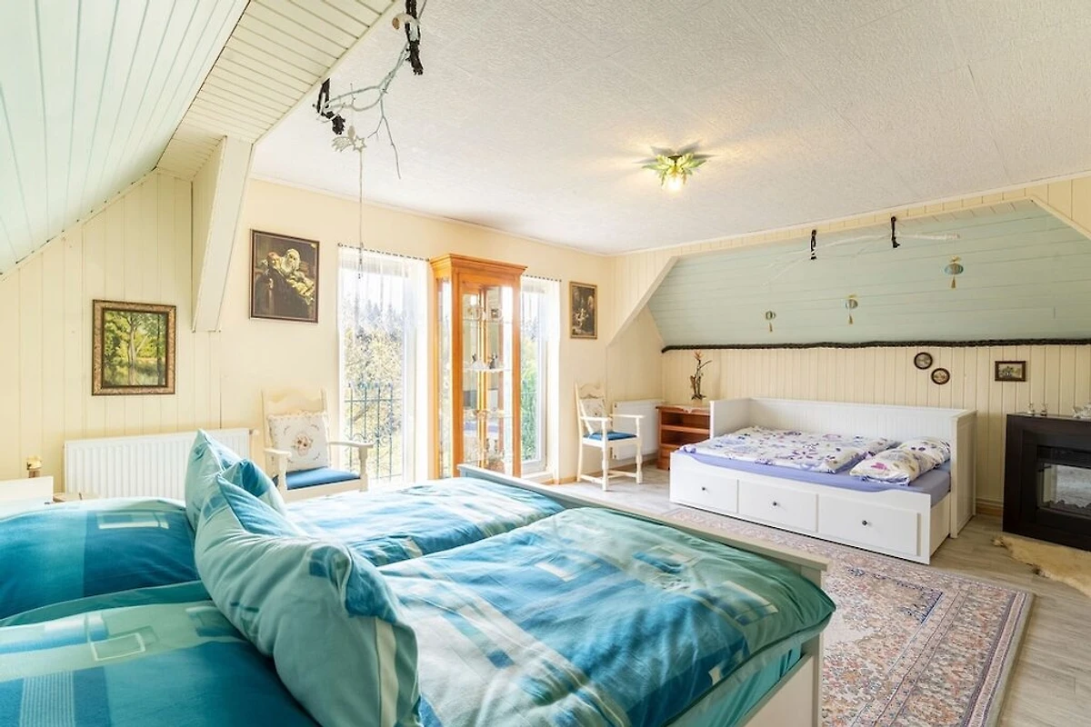 Entfliehen Sie dem Alltag in ein ruhiges Ferienhaus in Westböhmen - ideal für große Familien oder Gruppen, die Entspannung und Abenteuer suchen. Genießen Sie den hauseigenen Wellnessbereich im Freien mit Sauna und Whirlpool sowie den Garten mit Grill und Gartenmöbeln, in dem Kinder und Haustiere frei spielen können. Machen Sie es sich nach einem erlebnisreichen Tag am Kamin im Wohn-/Esszimmer gemütlich. Naturliebhaber werden die Wiesen und die Tierwelt des nahegelegenen Kaiserwalds (Slavkovský les) zu schätzen wissen, der nur eine Stunde entfernt liegt. Der Naturpark Thüringer Schiefergebirge mit Wander- und Radwegen, Burgen, Höhlen und Campingplätzen ist in drei Stunden erreichbar. Das Stadtzentrum ist nur 6 km entfernt und bietet alles für den täglichen Bedarf und köstliche Backwaren. Dieser ruhige Rückzugsort ist ideal, um vom Alltag abzuschalten. Der nächste Flughafen ist 160 km entfernt.