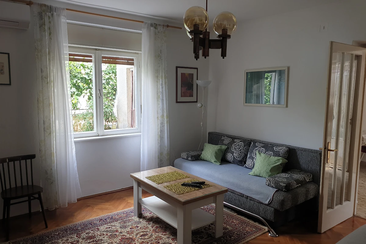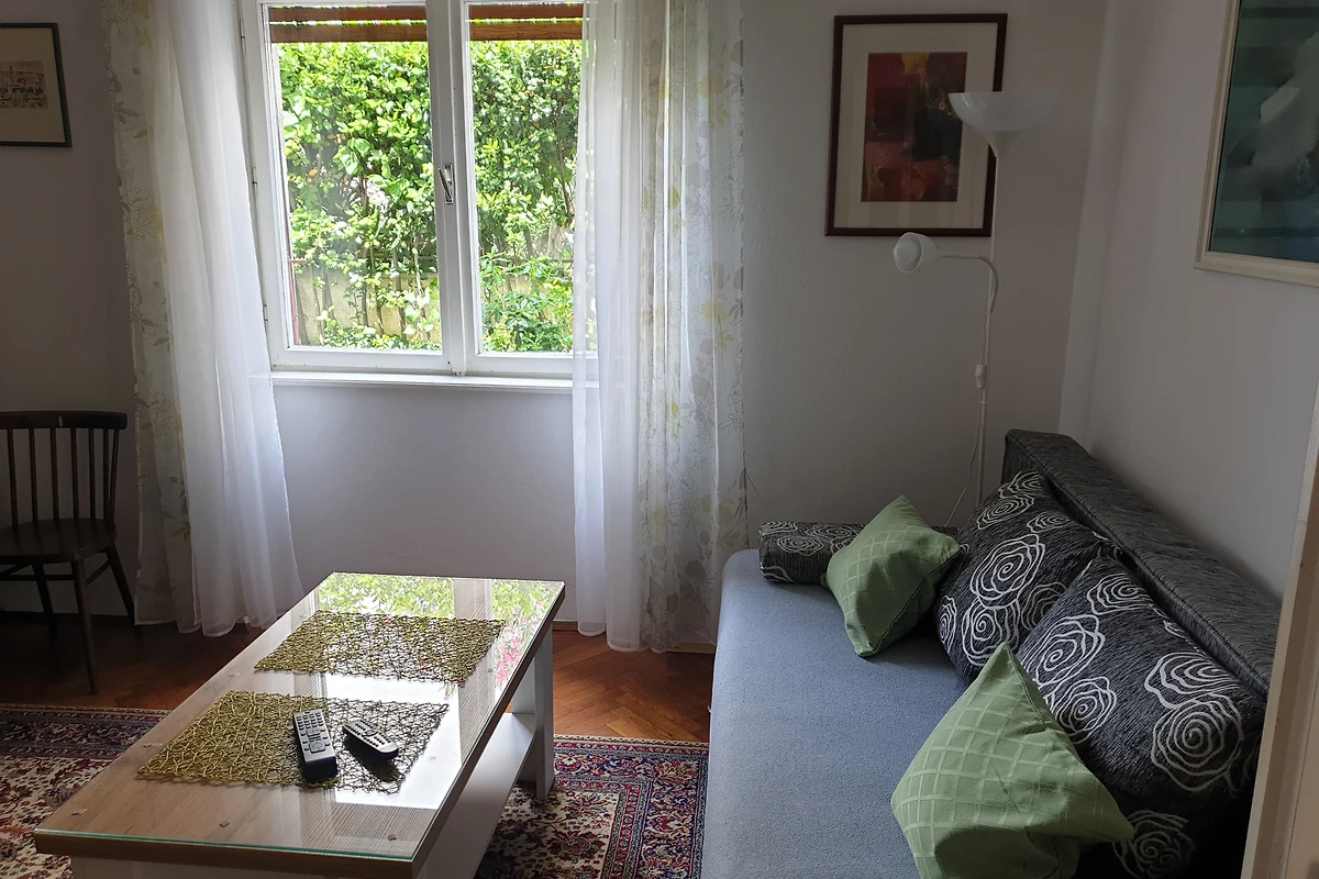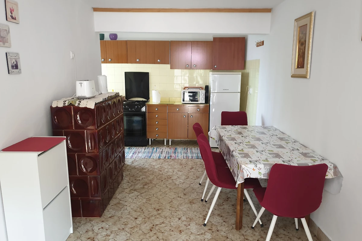 Jadranovo. Die Ferienwohnung befindet sich auf einem 300 qm grossen, geschlossenen Grundstück mit Blumen, Sträuchern und Bäumen, von einem Zaun begrenzt. Der Vermieter wohnt ständig im Haus, nutzt jedoch einen separaten Eingang. Die Zufahrt erfolgt direkt von der Hauptstrasse (asphaltiert). Parkplatz auf der Strasse vor dem Haus. Das Parken ist öffentlich und kostet 5 € pro Tag.