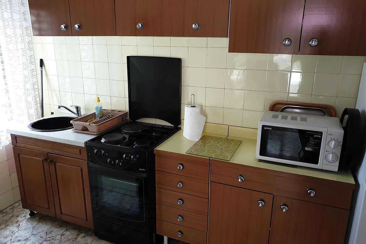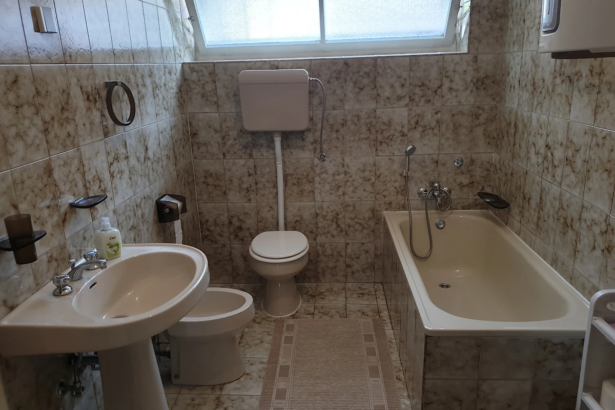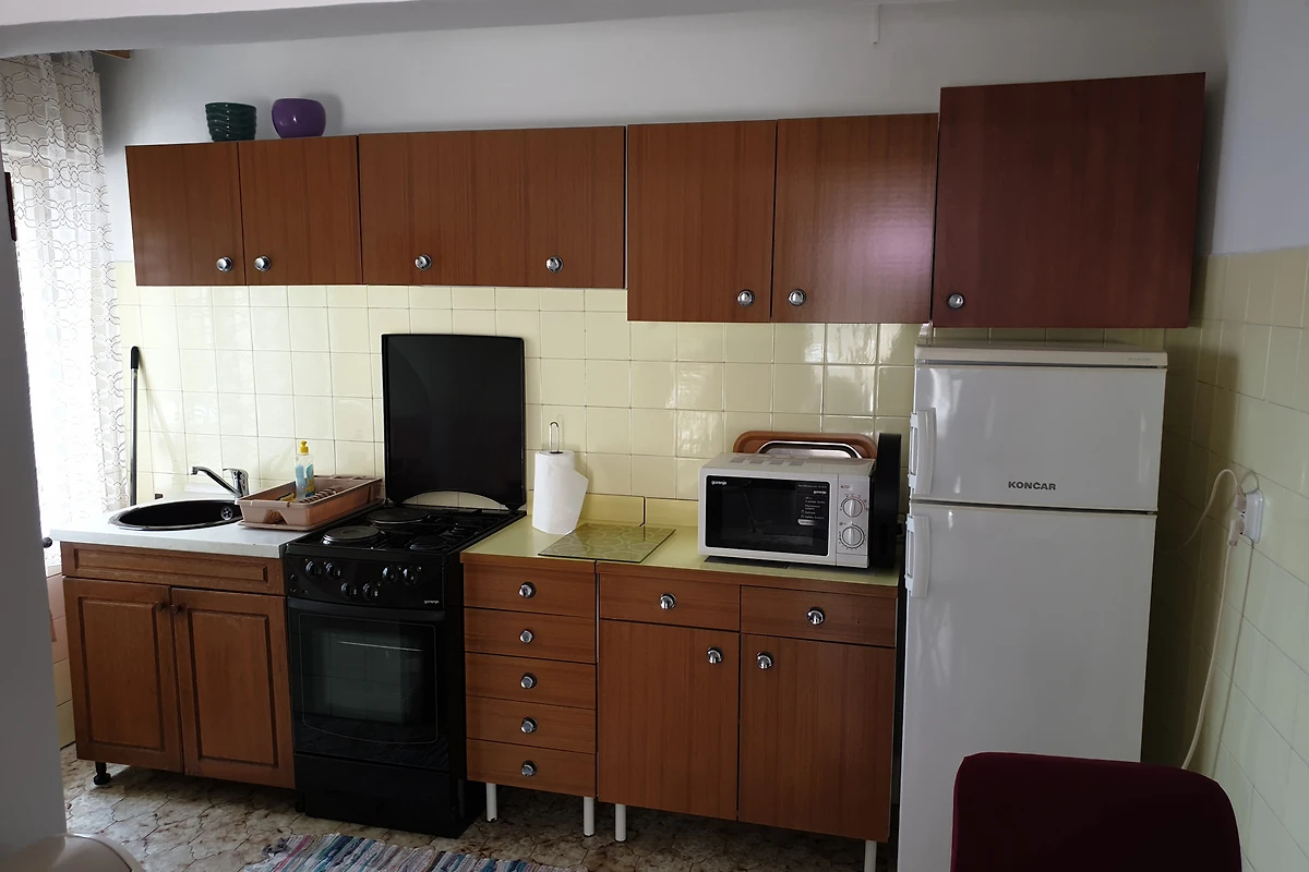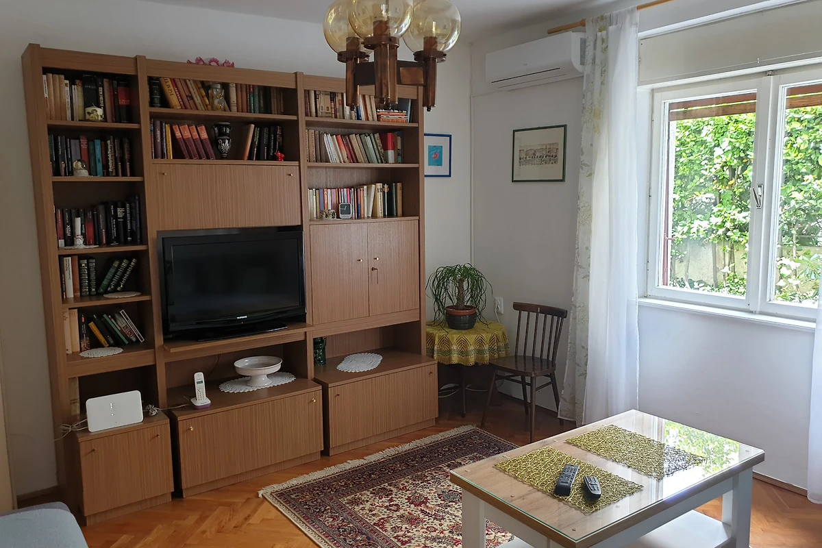 Jadranovo. Die Ferienwohnung befindet sich auf einem 300 qm grossen, geschlossenen Grundstück mit Blumen, Sträuchern und Bäumen, von einem Zaun begrenzt. Der Vermieter wohnt ständig im Haus, nutzt jedoch einen separaten Eingang. Die Zufahrt erfolgt direkt von der Hauptstrasse (asphaltiert). Parkplatz auf der Strasse vor dem Haus. Das Parken ist öffentlich und kostet 5 € pro Tag.
