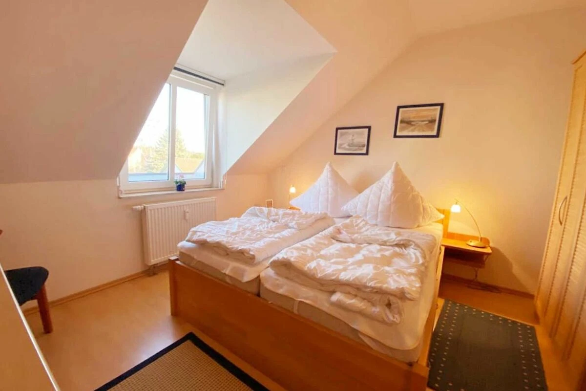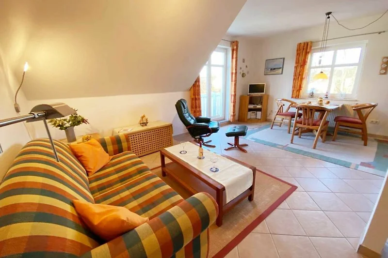 Nur 600m vom Strand entfernt liegt diese gemütlich eingerichtete Wohnung im 2. Obergeschoss mit ca. 52 m² Wohnfläche und einem sonnigen Südwestbalkon. Die sehr freundliche Wohnung kann mit bis zu 4 Personen genutzt werden. Ein separates Schlafzimmer und eine gemütlich Schlafcouch bieten Platz hierfür. Der Wohnung ist der kostenlose Stellplatz 15 zugeordnet. Waschmaschine und Trockner können gegen eine Gebühr im Hause genutzt werden. WLAN steht Ihnen kostenlos zu Verfügung.