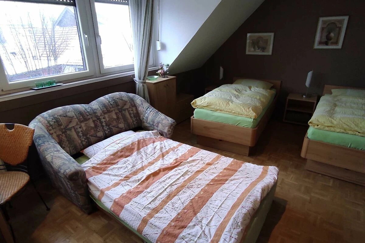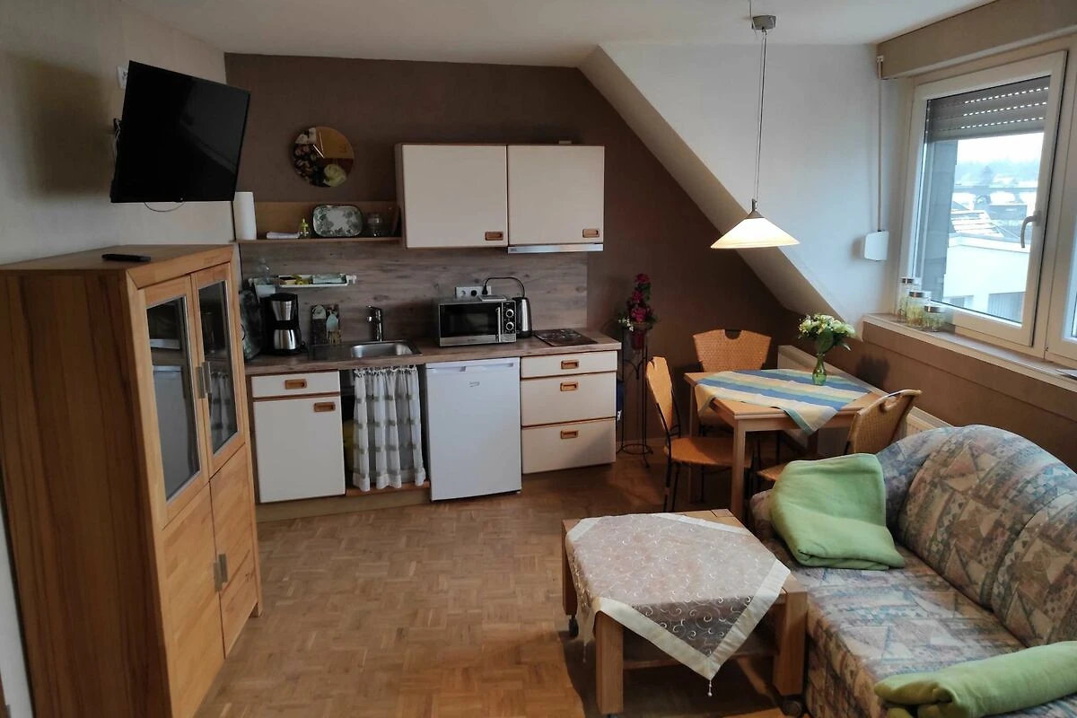 Das Erich Studio-Apartment befindet sich im Westlichen Münsterland in Rhede im Stadtzentrum. Es ist eine von 5 Ferienwohnungen in unserem Haus. Das Apartment befindet sich im Dachgeschoss und besteht aus einem kombinierten Wohn- Schlafzimmer mit Küchezeile sowie Badezimmer und kleiner Garderobe. Komplett ausgestattetes Studio-Apartment mit Gartenblick für 2-3 Personen. Für Allergiker geeignet. Nichtraucherwohnung.