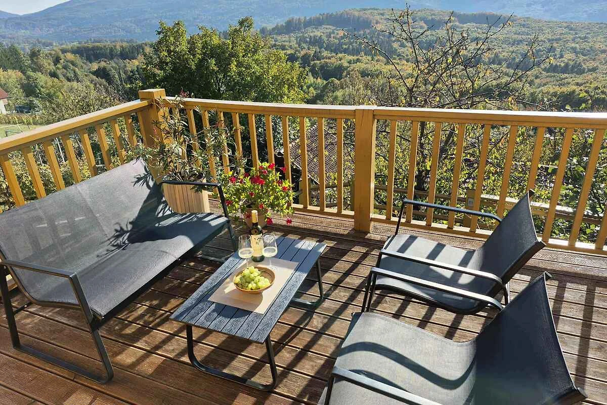 Das einzeln stehende und 2021 renovierte Ferienhaus ist rustikal eingerichtet. Das Grundstück befindet sich in einem Wohngebiet. Auch wegen des Ausblicks vom Grundstück auf die Berge und der ruhigen und sonnigen Hanglage ist das Domizil beliebt. Zur alleinigen Nutzung stehen zur Verfügung: Grillmöglichkeit, Gartenmöbel und Hof.