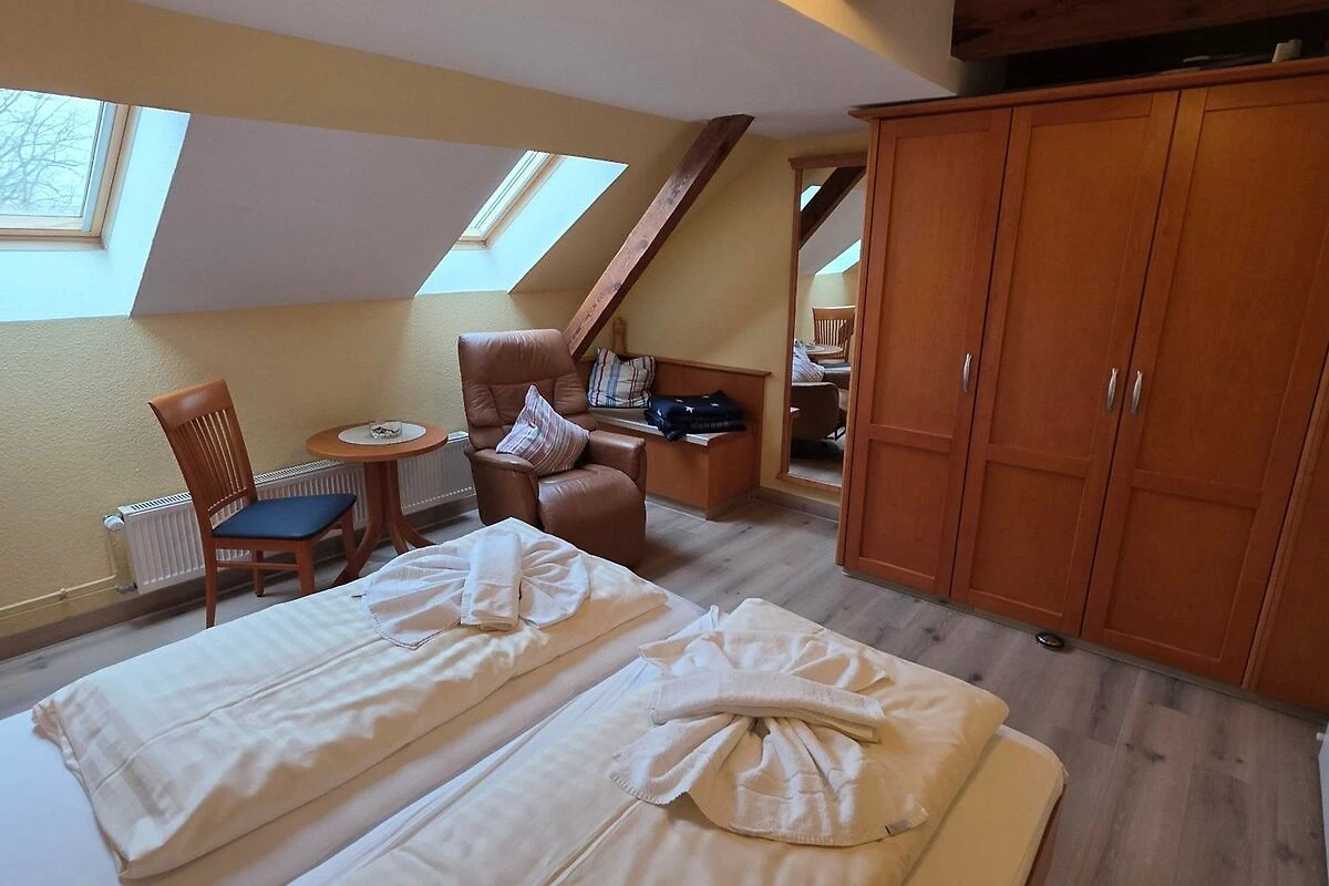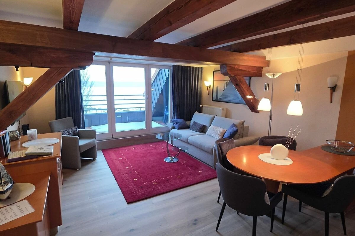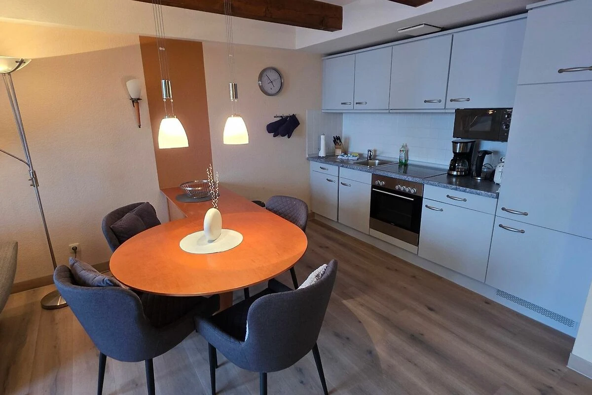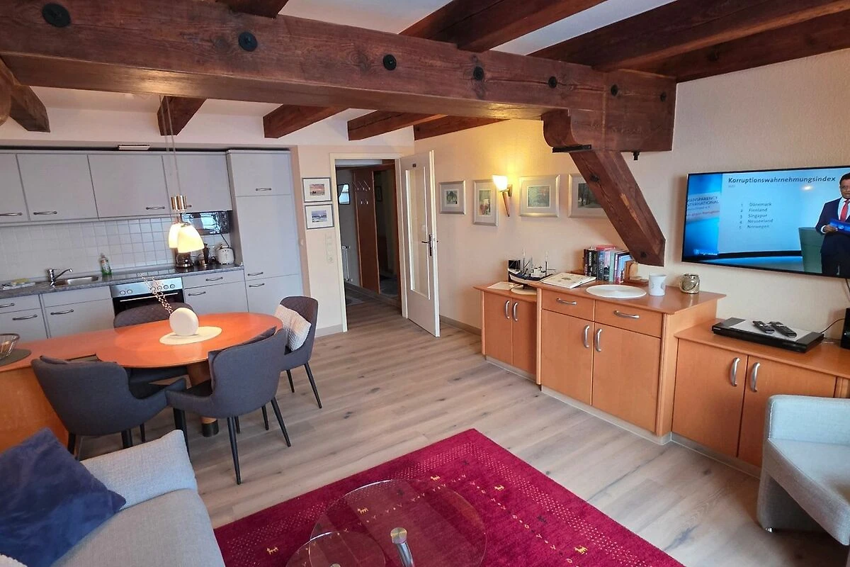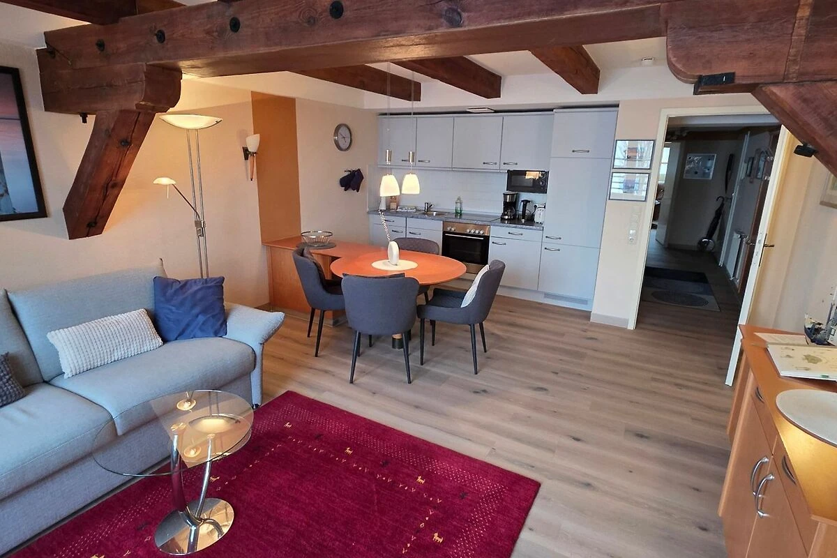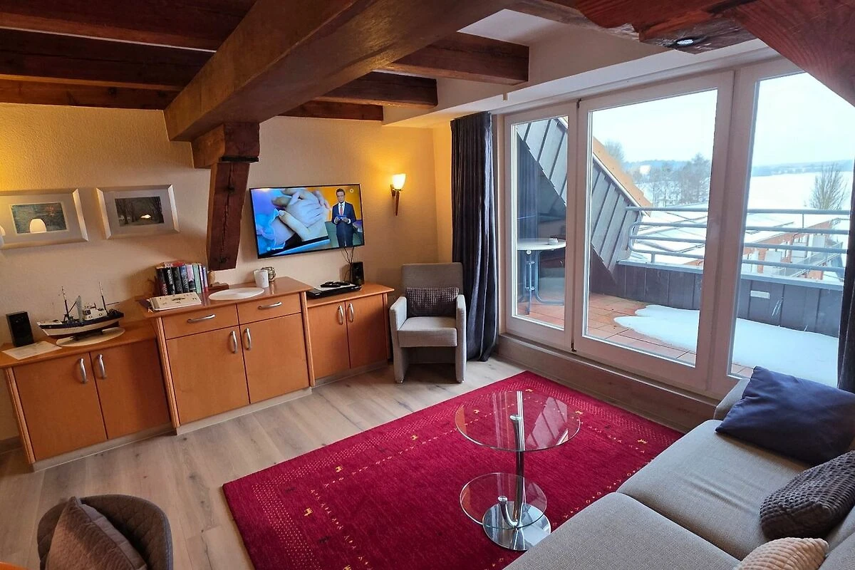 Charakteristisch sind vor allem die historischen Balken im Dachbereich der Unterkunft. Geniessen Sie in dieser in der 3. Etage befindlichen komfortablen und gemütlich ausgestatteten Wohnung den wunderschönen direkten Ausblick auf die Binnenmüritz Die Lage des Gebäudes schräg gegenüber des Müritzeums ist so zentral, dass Sie direkt zu einem Spaziergang an der Müritz, zum Yachthafen, zu den Fahrgastschiffen oder in die Altstadt aufbrechen können. Dennoch ist die Lage sehr ruhig. Falls Sie mit dem Auto unterwegs sind finden Sie direkt neben dem Gebäude eine Parkmöglichkeit Weitere Informationen zu der Wohnung finden Sie in den übrigen Unterlagen.