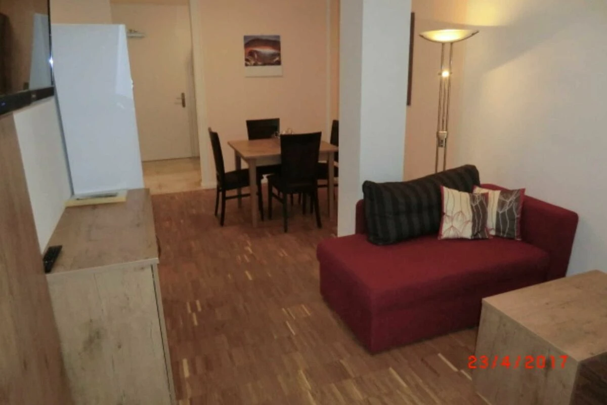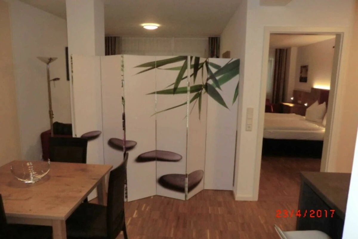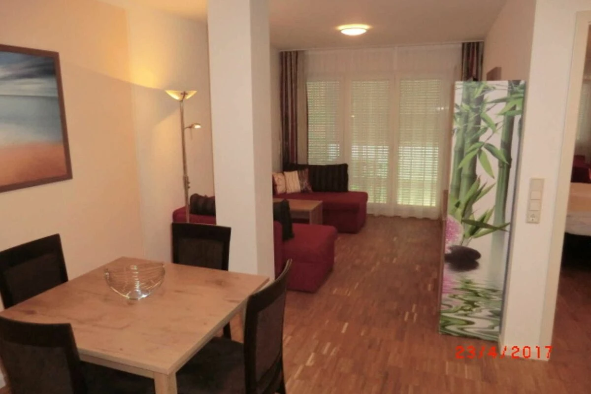 Wohn-Essraum: 1 Tisch mit 4 bequemen Stühlen, 2 Couchen die man zum Bett umbauen kann und 1 Stellwand (Sichtschutz) zum ausziehen. ! kl. Tisch und Seitenschrank sowie 1 Fernseher mit Wandhalterung (verstellbar).