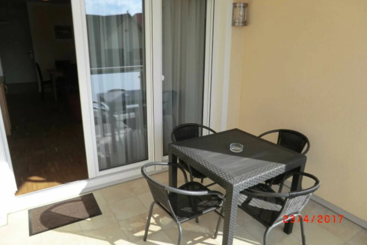 Auf dem Balkon mit dem Tisch und den 4 Stühlen sowie auch 1 Sonnenschirm (im Sommer) darf man auch mal eine rauchen.