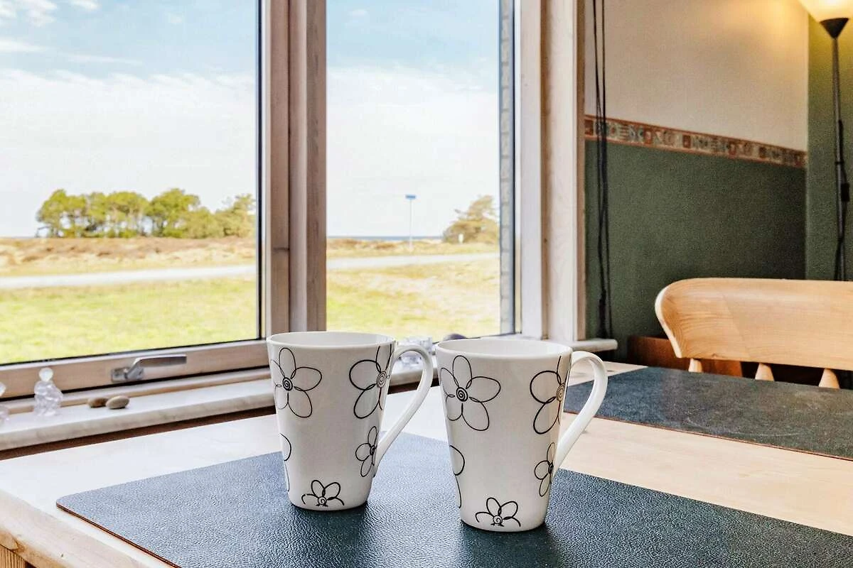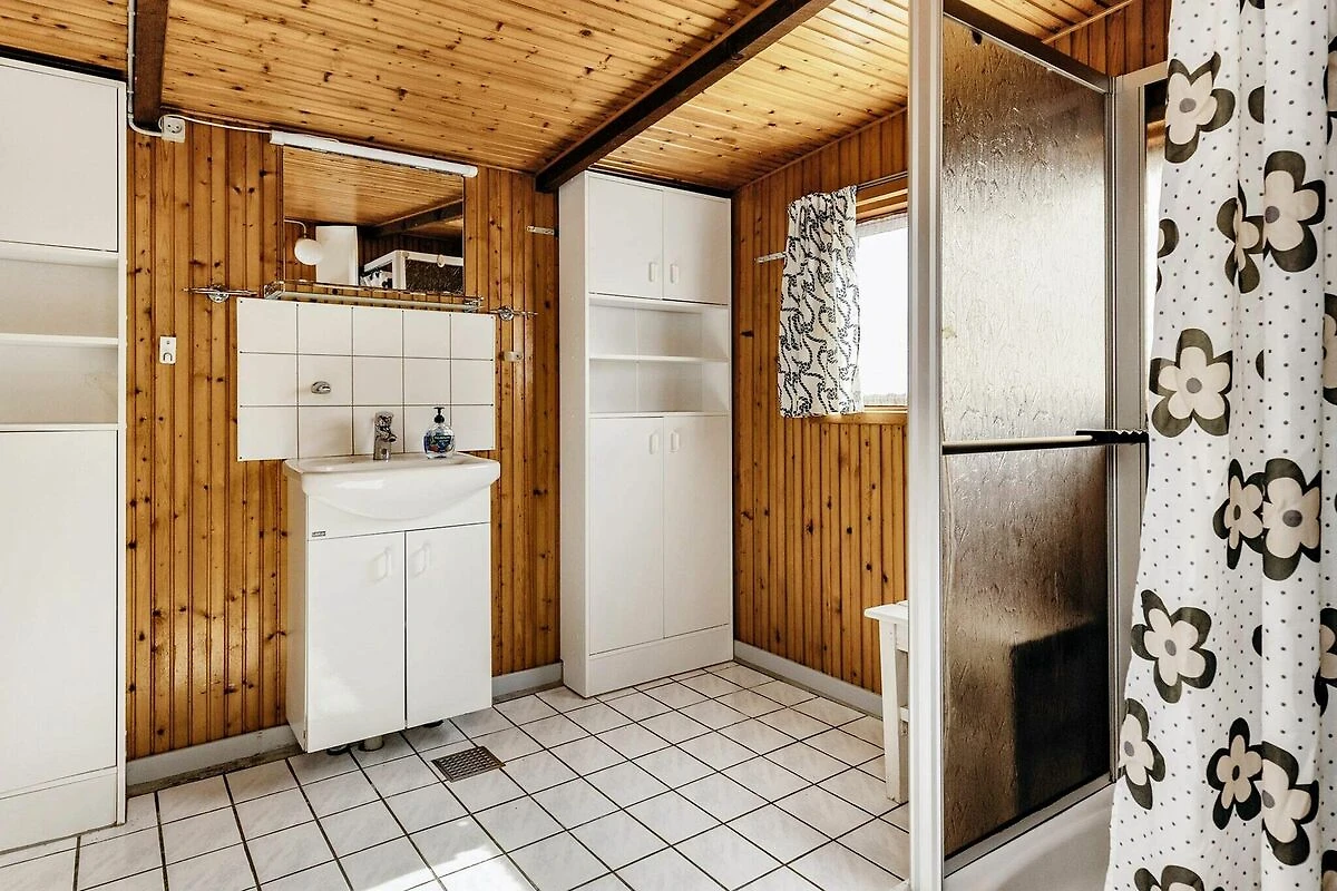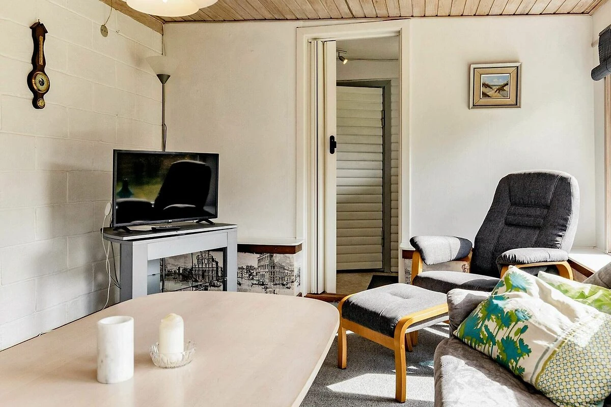 , Küche(Kochherd(elektrisch), Dunstabzugshaube, Kaffeemaschine, Mikrowelle, Kühlschrank(+ Gefrierfach)), Wohn-/Schlafzimmer(TV(Kabel, Deutsch Fernsehsender, dänische Fernsehsender), Radio), Schlafzimmer(Doppelbett), Schlafzimmer(2x Einzelbett), Schlafzimmer(Einzelbett), Badezimmer(Fußbodenheizung)(Badewanne oder Dusche, Waschbecken, Toilette, Waschmaschine), Heizung(elektrisch), Terrasse, Grill, Spielgeräte, Luft-Luft-Wärmepumpe