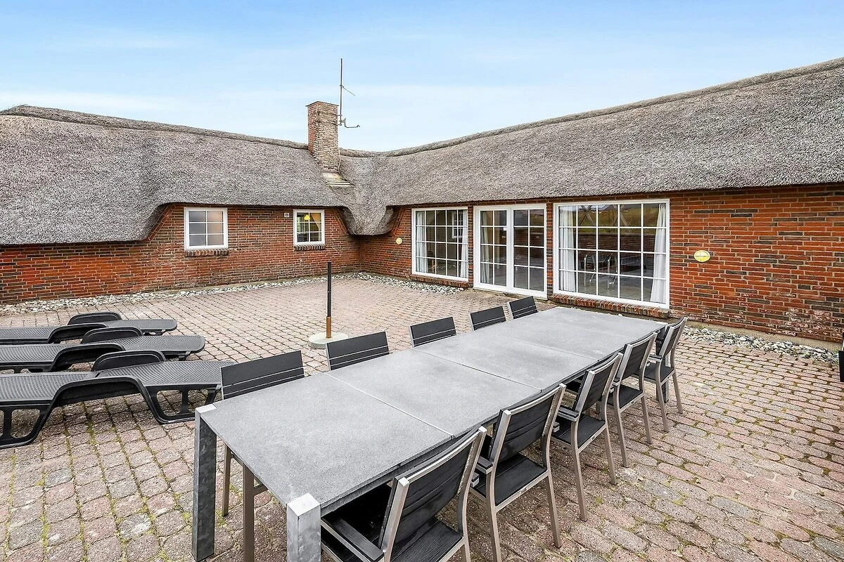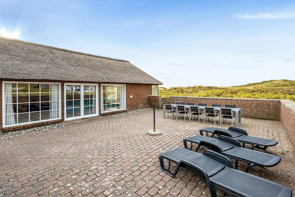 Geräumiges, reetgedecktes Ferienhaus mit Pool, Whirlpool und Sauna im Haus sowie ausreichend Platz für bis zu 10 Personen. Liegt attraktiv an der äußersten Dünenreihe in Klegod, sodass man die frische Meeresbrise immer genießen kann. Die abgeschirmte Terrassenfläche bietet Schutz vor Wind und Wetter sowie eine sichere Fläche für Kleinkinder oder den Vierbeiner der Familie. Auf dem weitläufigen Dünengrundstück stehen zudem Schaukel und ein kleiner Sandkasten bereit. Das laufend instand gehaltene Ferienhaus ist wohnlich eingerichtet. Es gibt zwei Schlafbereiche mit je einem zugehörigen Badezimmer. Der Pool des Hauses ist ganze 20 m2 groß. Vorne am Fenster steht zudem ein Whirlpool mit Ausblick zu den Dünen bereit. An kühleren Tagen kann man auch die Wärme in der Sauna genießen. Das Ferienhaus liegt traumhaft schön inmitten wunderbarer Küstenlandschaft! Von der Terrasse hat man Ausblick zu den Dünen und zum herrlichen Sonnenuntergang. Die Nähe zur Nordsee ist ein weiterer, großer Pluspunkt dieses Hauses, ganz gleich zu welcher Jahreszeit.Kurz vor Ihrem Ankunftsdatum kann eine rückzahlbare Kaution erhoben werden. Die Kaution stellt sicher, dass Ihr Aufenthalt reibungslos verläuft, und deckt eventuelle Zusatzleistungen oder Verbrauchskosten ab.Diese Kaution deckt den Verbrauch von Nebenkosten während Ihres Aufenthalts sowie zusätzliche in Anspruch genommene Leistungen ab.Der endgültige Betrag wird anhand der tatsächlichen Zählerstände und Nutzung zusätzlicher Services angepasst. Ein etwaiger Restbetrag wird Ihnen innerhalb von 21 Tagen nach dem Check-out zurückerstattet.Die Kaution dient lediglich als Vorauszahlung für Leistungen, die Sie ohnehin bezahlen würden, und ermöglicht einen reibungslosen Ablauf Ihres Aufenthalts und Check-outs.