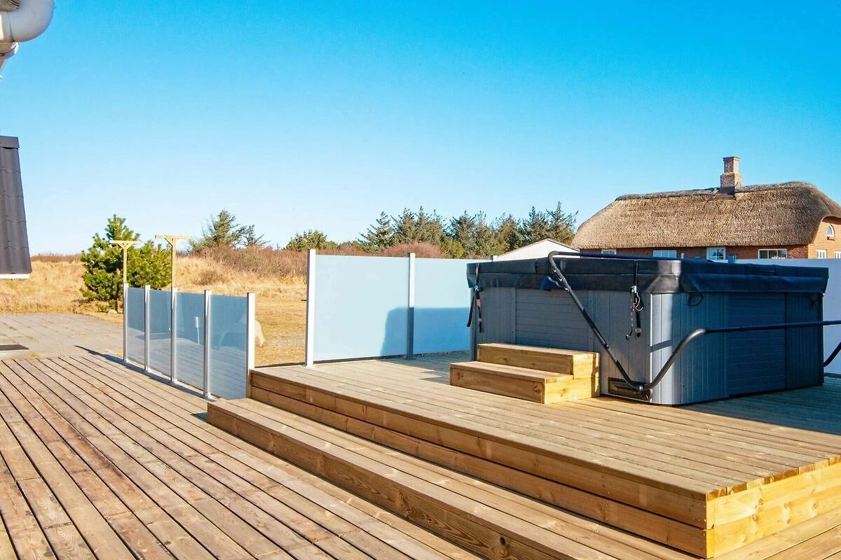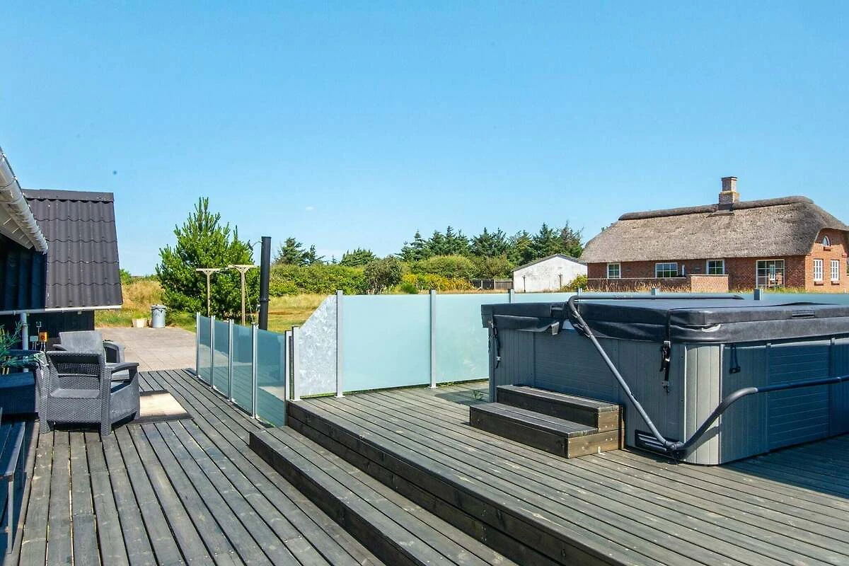 Ferienhaus mit Whirlpool im Außenbereich mit schönem Fjordblick. Attraktive Lage, auf halbem Wege zwischen den Ferienorten Søndervig und Hvide Sande. Das Ferienhaus verfügt zudem über einen Whirlpool und eine Sauna im Innenbereich sowie im Sommer über eine praktische Außendusche im Außenbereich. Das Einzigartige an diesem Ferienhaus ist die schöne Aussicht zum Ringkøbing-Fjord, die Sie sowohl bei den Mahlzeiten im Essbereich als auch beim Baden im erhöht gelegenen Whirlpool im Freien genießen können. Das Ferienhaus ist gut eingerichtet und bietet drei Schlafzimmer: zwei mit jeweils einem Doppelbett, das dritte mit zwei Einzelbetten. Es stehen u.a. deutsche TV-Sender zur Auswahl, außerdem WLAN und Chromecast zum Streamen eigener Dienste sowie eine PS2. Badezimmer und zudem Gästetoilette im Haus, wo es auch eine Waschmaschine und einen Wäschetrockner gibt. An der Rückseite des Hauses findet man eine Naturfläche. Zudem gibt es eine Rasenfläche für Fußball und andere Spiele im Freien. Im Haus zudem mehrere Spiele für den Innen- und Außenbereich. Genießen Sie dieses Ferienhaus auf diesem einzigartigen Grundstück, das sowohl Ausblick zum nahen Fjord als auch in die unberührte Natur ringsum bietet. Zudem sind es nur etwa 800 m bis zur Nordseeküste. Die beliebten Ferienorte Søndervig und Hvide Sande mit ihren Läden und Möglichekeiten für Wassersport, Angeln und Sightseeing liegen zudem in Reichweite.Kurz vor Ihrem Ankunftsdatum kann eine rückzahlbare Kaution erhoben werden. Die Kaution stellt sicher, dass Ihr Aufenthalt reibungslos verläuft, und deckt eventuelle Zusatzleistungen oder Verbrauchskosten ab.Diese Kaution deckt den Verbrauch von Nebenkosten während Ihres Aufenthalts sowie zusätzliche in Anspruch genommene Leistungen ab.Der endgültige Betrag wird anhand der tatsächlichen Zählerstände und Nutzung zusätzlicher Services angepasst. Ein etwaiger Restbetrag wird Ihnen innerhalb von 21 Tagen nach dem Check-out zurückerstattet.Die Kaution dient lediglich als Vorauszahlung für Leistungen, die Sie ohnehin bezahlen würden, und ermöglicht einen reibungslosen Ablauf Ihres Aufenthalts und Check-outs.