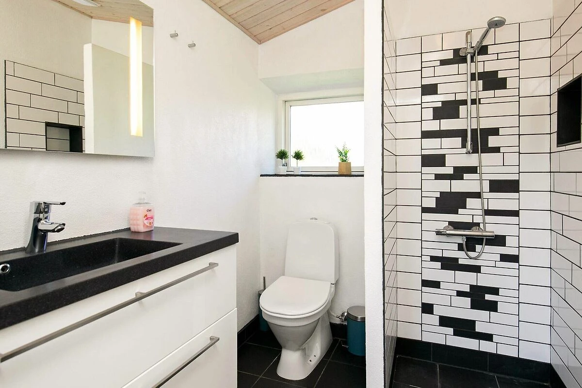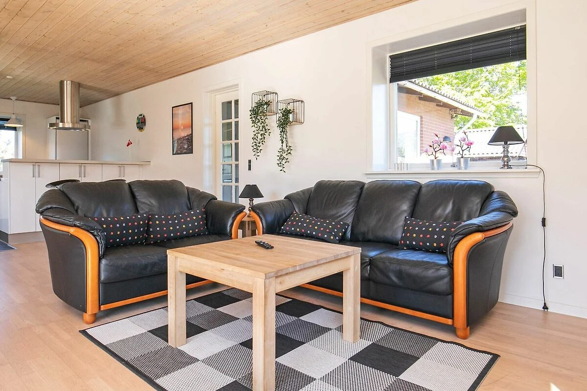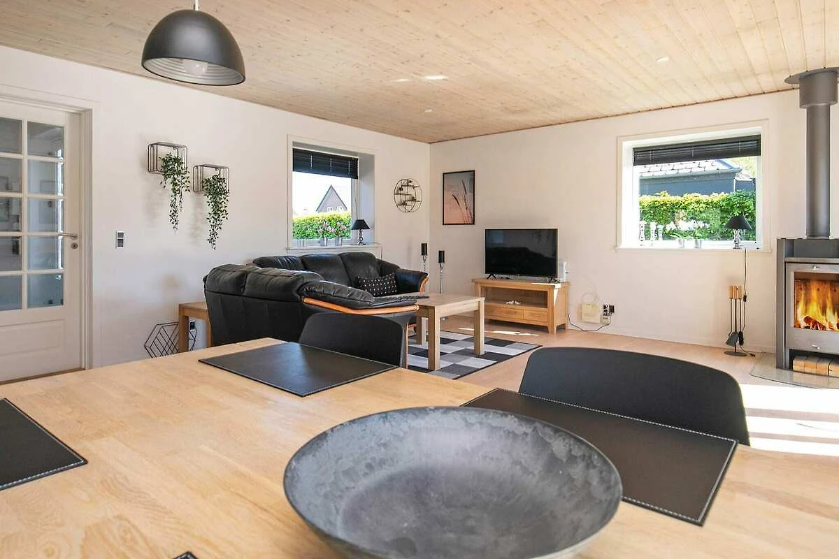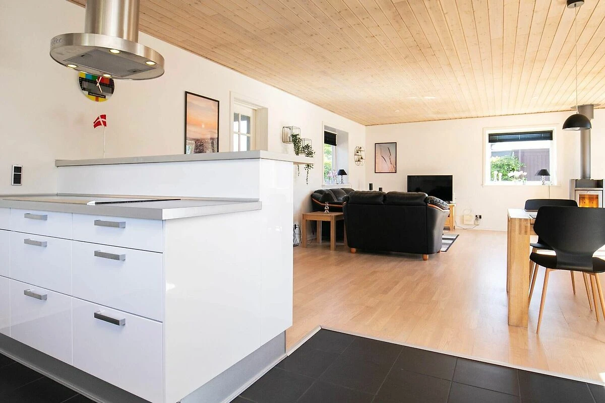 , offene Küche(Kochherd(elektrisch), Dunstabzugshaube, Kaffeemaschine, Mikrowelle, Spülmaschine, Kühl-/Gefrierkombination), Wohn-/Schlafzimmer(TV(Kabel, Deutsch Fernsehsender, dänische Fernsehsender), Chromecast), Schlafzimmer(Doppelbett), Schlafzimmer(2x Einzelbett), Badezimmer(Fußbodenheizung)(Badewanne oder Dusche, Waschbecken, Toilette, Waschmaschine), Carport, Terrasse, Grill