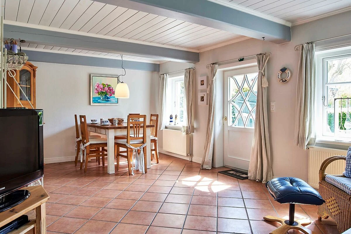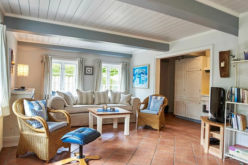 Diese Doppelhaushälte unter Reet bietet viel Fläche für eine Familie.
