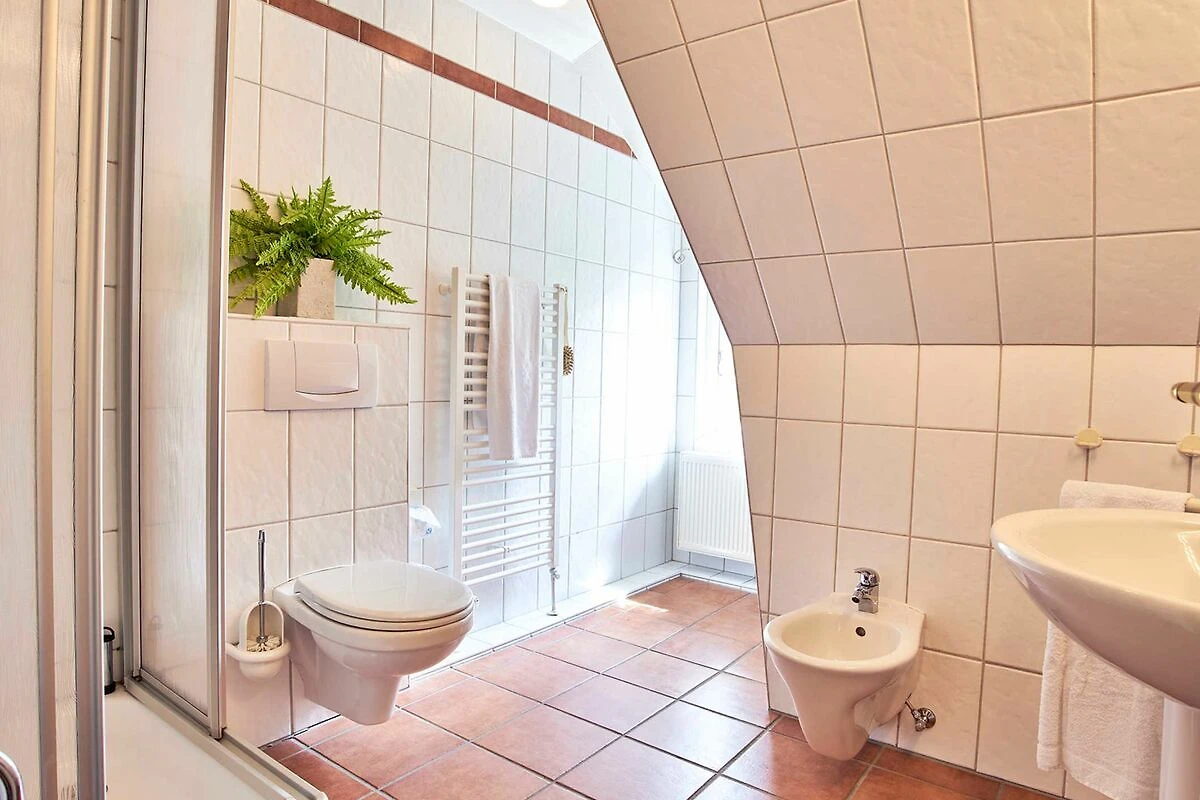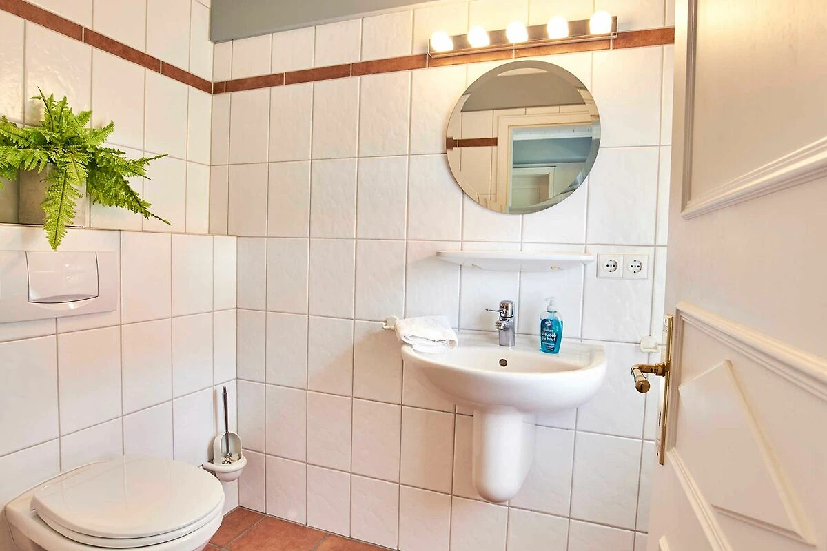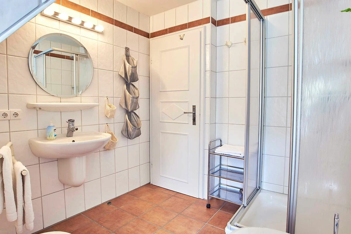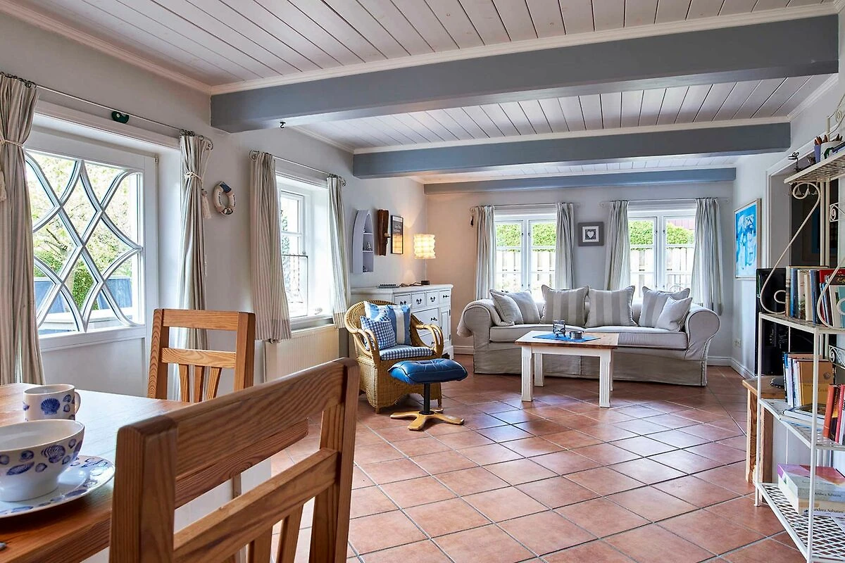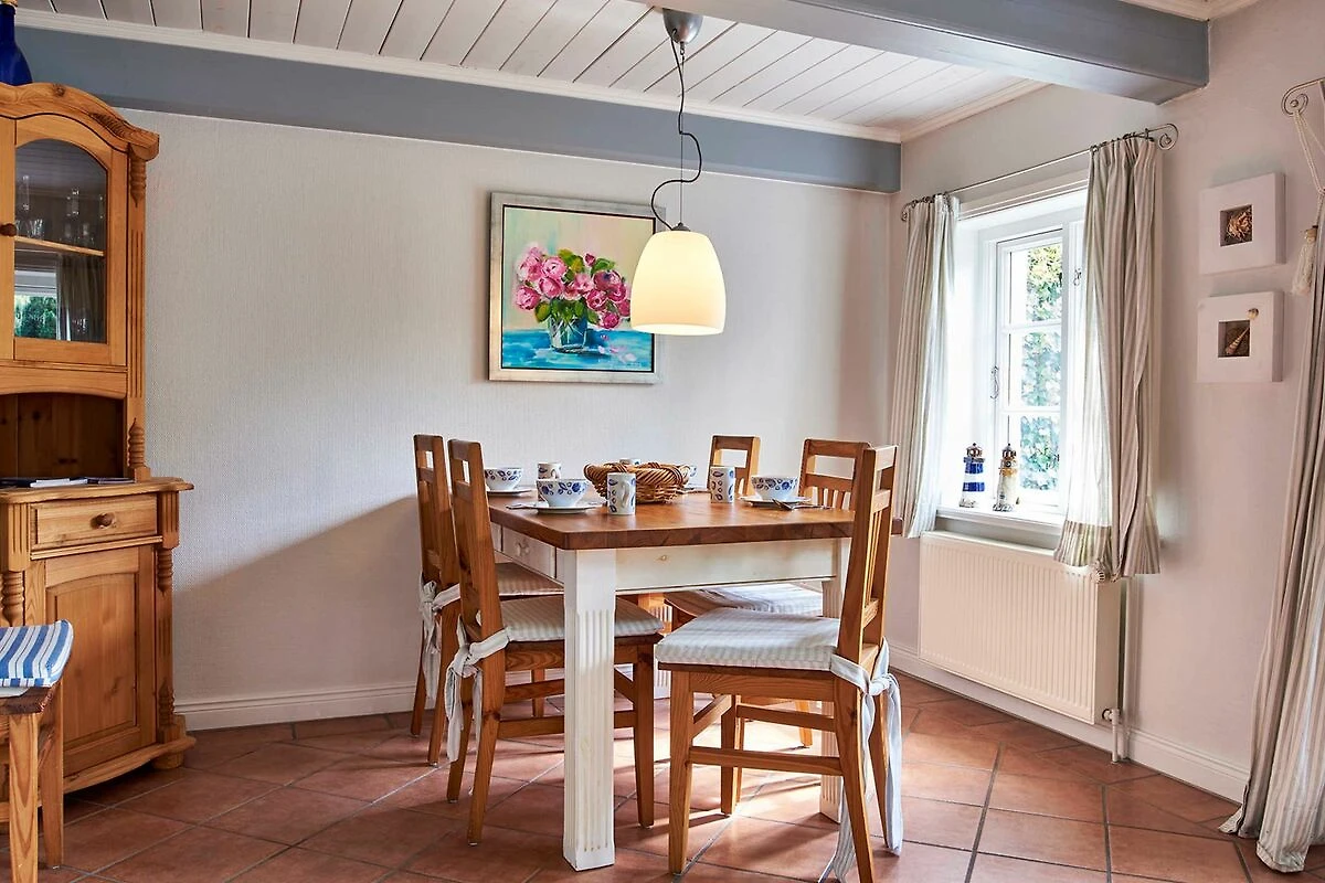 Das Obergeschoss verfügt über zwei Schlafzimmer: 1 Doppelbett im Elternschlafzimmer, 2 Einzelbetten im Stil von Alkoven im Kinderzimmer sowie eine kleine Spielgalerie im Flur laden zum Verweilen ein. Das Duschbad ist mit WC ausgestattet. Das gesamte Mobiliar ist hochwertig und sehr liebevoll zusammengestellt. Auf der Süd-Terrasse, mit bequemen Möbeln und Strandkorb, kann man die Stunden im Freien geniessen. Dabei wünschen wir Ihnen bereits jetzt viel Vergnügen und hoffen, dass die Nordseeluft und das Wetter dazu beitragen!