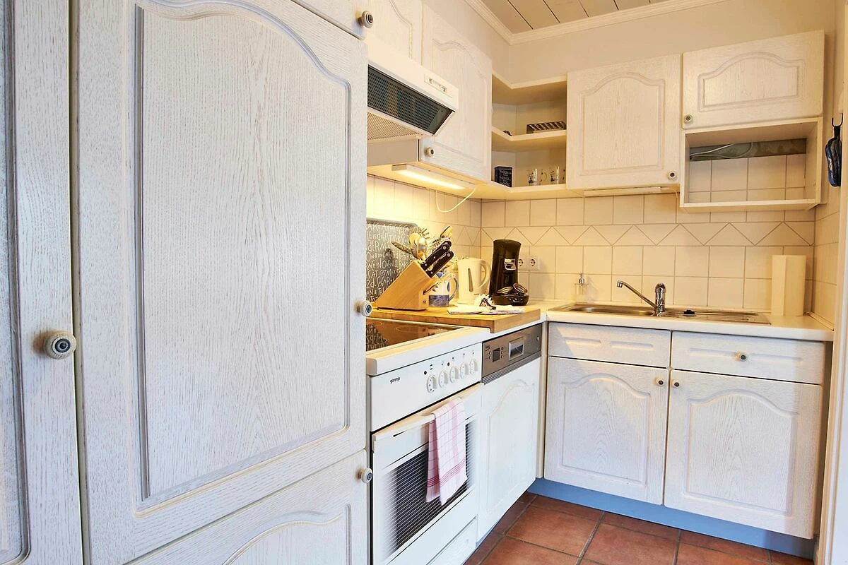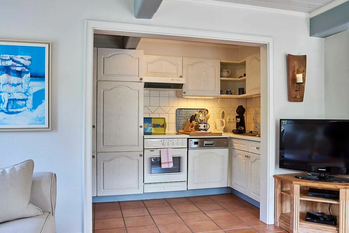 Im Erdgeschoss befindet sich ein gemütlicher Wohn-Essbereich mit angrenzender halboffener Küche, welche komplett ausgestattet ist. Sat TV und DVD sowie ein W-Lan und Festnetz Telefonanschluss ist vorhanden.