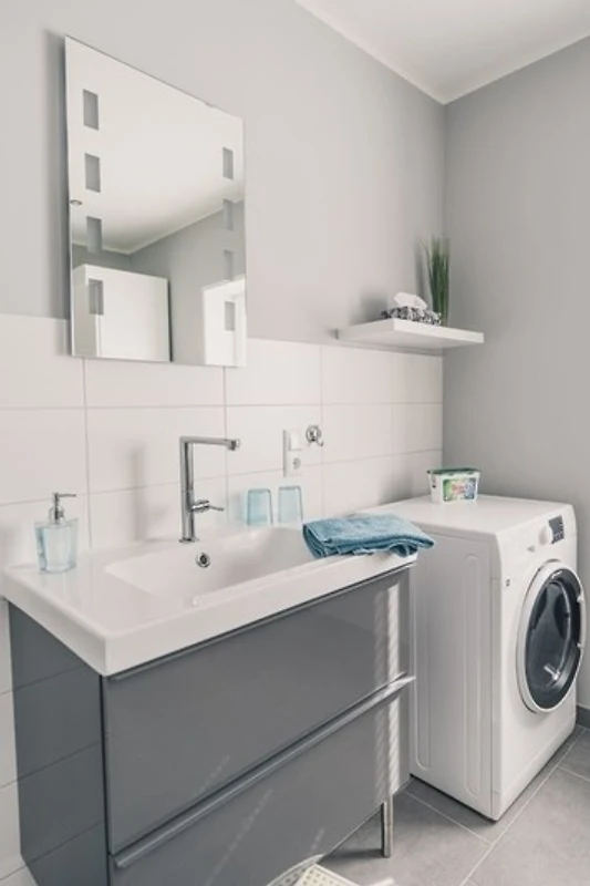Bad: Fussbodenheizung, Handtuchheizkörper, Föhn, Duschgel, Waschmaschine mit Trocknerfunktion