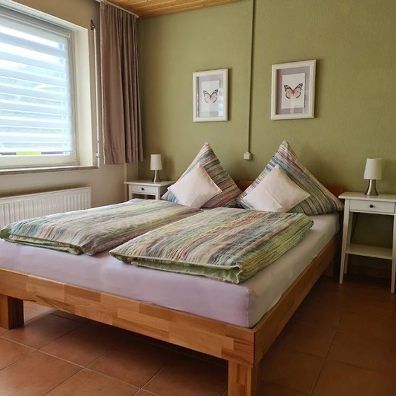 Im Schlafzimmer befindet sich ein Doppelbett 160 breit (2Matratzen).