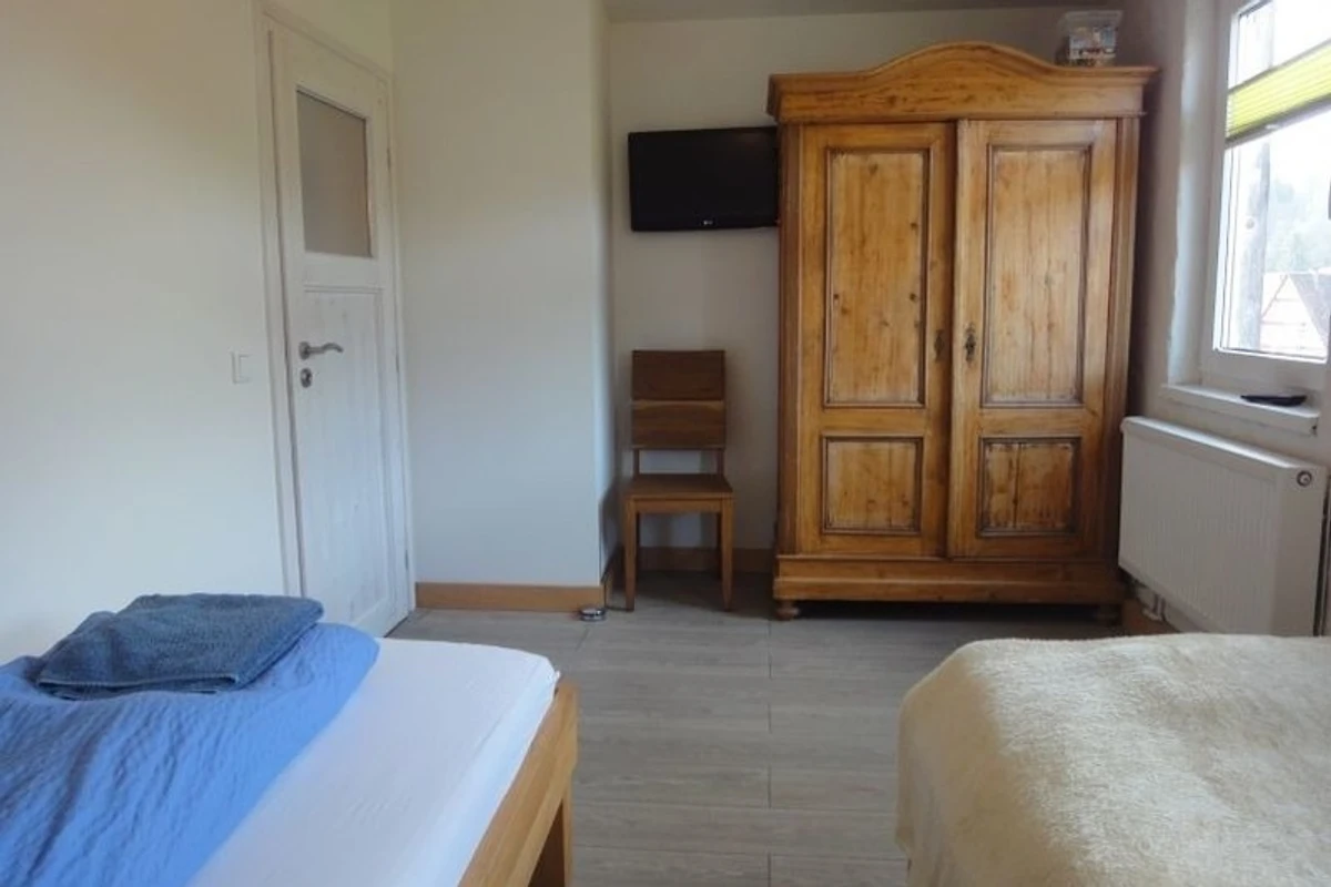 Unsere Wohnungen befinden sich in einem alten ehemaligen Bauernhof in dem kleinen beschaulichen Ort Stetten. Die Wohnungen wurden 2013 komplett renoviert und neu gestaltet mit Naturmaterialien. Wir haben Wert auf eine gute und solide Einrichtung gelegt, komplette Einbauküche, grosser Esstisch, stabile Betten und Matrazen, ebenerdige Dusche, separates WC und Urinal. Das Haus befindet sich an einen Hang angelehnt, somit haben wir einen freien Blick auf die Eschach und gegenüberliegende Hänge. Vor dem Haus befindet sich ein grosser Parkplatz mit einem alten Ahornbaum, der im Sommer wunderbaren Schatten spendet und zum hinsitzen und ausruhen einlädt. Neben dem Hof haben wir eine Grillhütte installiert mit grossem gemauertem Grill und Sitzplätzen für ca. 20 Personen.