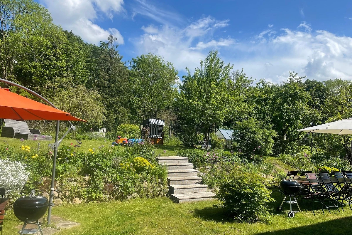 Ihre Ferienunterkunft erstreckt sich über 2 Etagen mit freiem Blick in die Parkanlage der Brunnenaue. Der ruhige Garten mit sonniger, windgeschützter Sitzecke lädt Sie zum Entspannen ein.