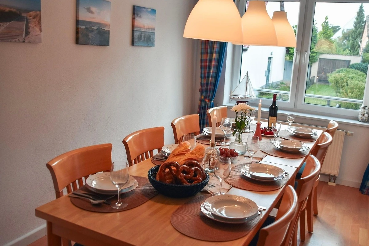 Das Haus ist mit seinen 120 qm Wohnfläche geräumig für bis zu 8 Gäste geeignet und gut ausgestattet: 3 separate Schlafzimmer, grosser Wohnbereich mit angrenzendem separatem Esszimmer, WLAN , Garten mit Kinderspielplatz, Garage für Fahrräder, 2 Autostellplätze vor dem Haus....
