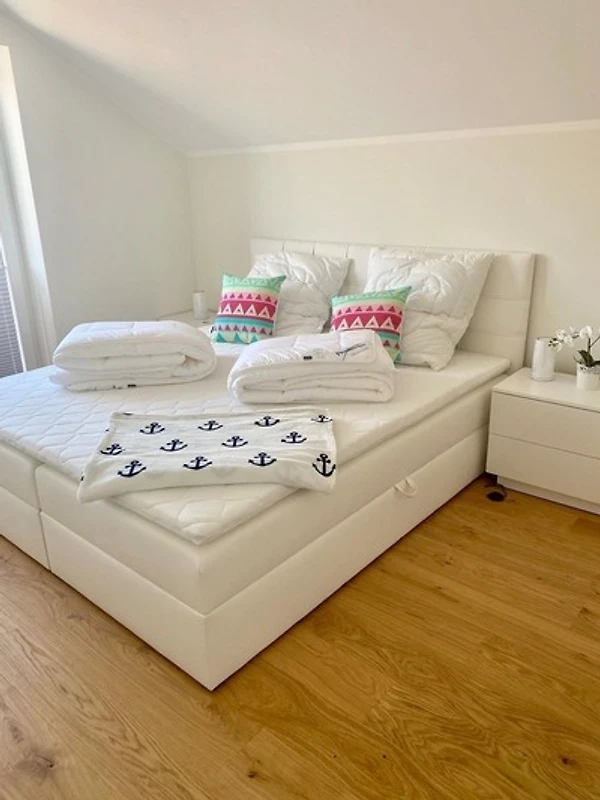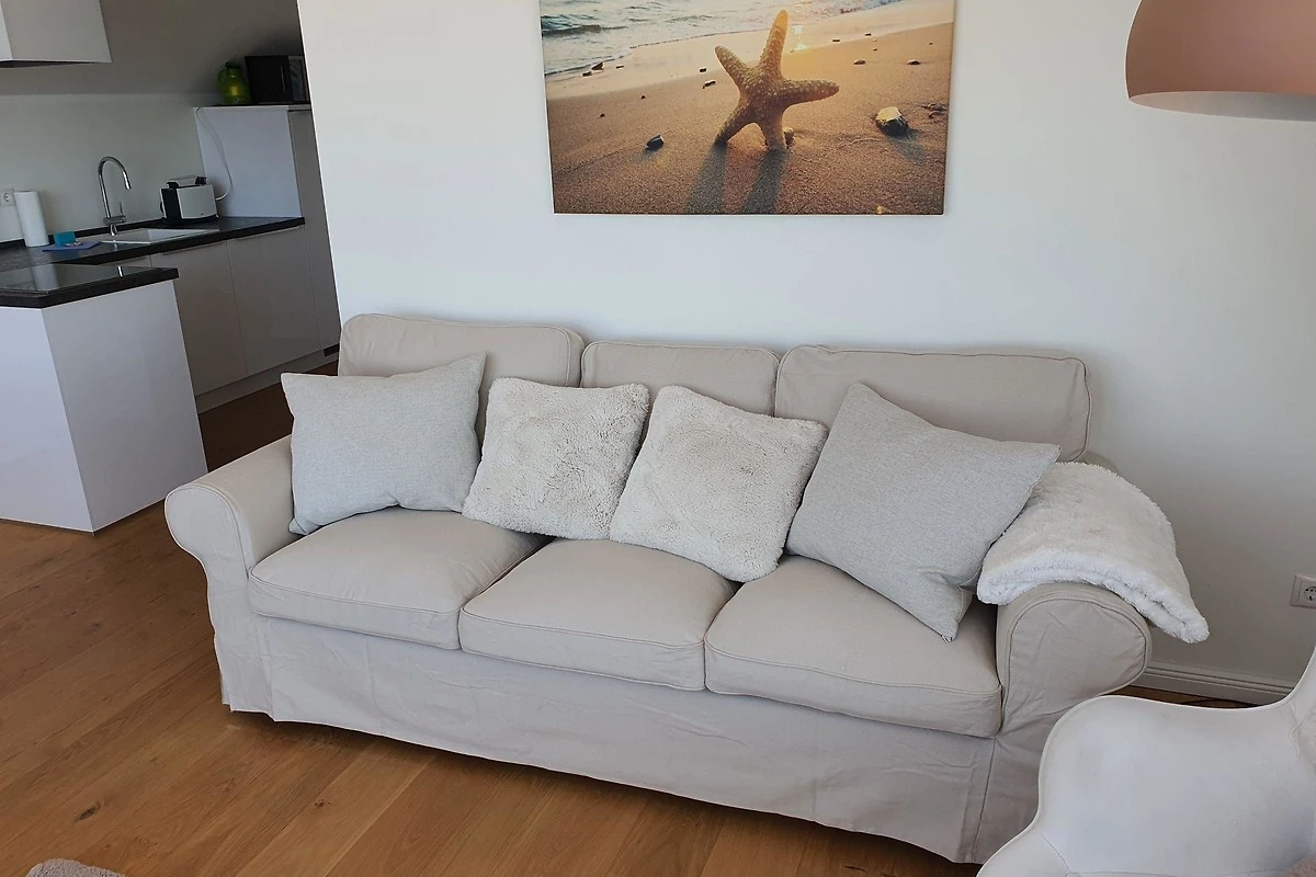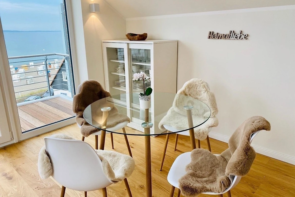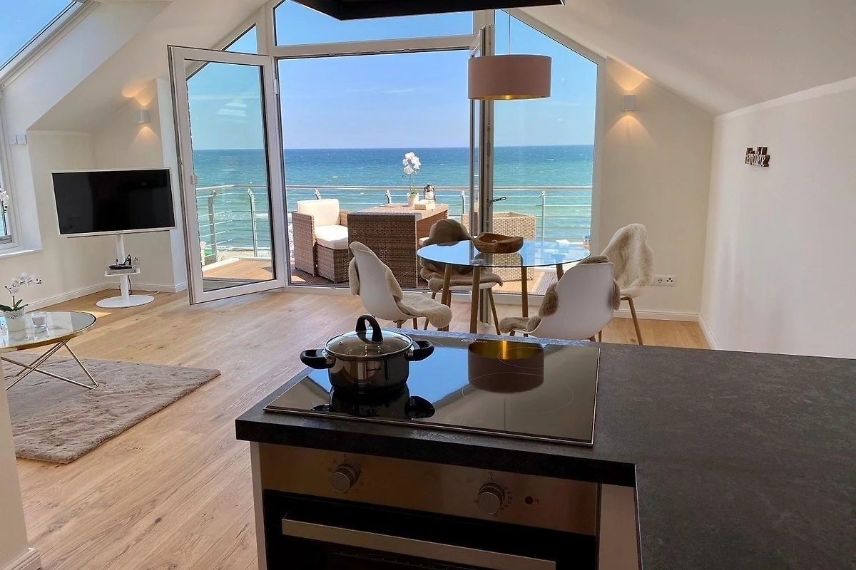 Die Ferienwohnung „Ostseesternchen“ in der Ferienanlage „Meeresblick“ bietet Platz für bis zu 4 Personen und besticht durch eine hochwertige, helle und moderne Einrichtung. Der lichtdurchflutete Wohnraum mit grosser Fensterfront bietet Zugang zu einem Balkon, der auf die Ostsee blickt. Im Wohnbereich stehen ein gemütliches Sofa und ein Esstisch bereit, während die offene, umfassend ausgestattete Küche (inklusive Induktionsherd, Backofen und Spülmaschine) zum Kochen einlädt. Die Wohnung verfügt über zwei Schlafzimmer mit hochwertigen Betten und offenen Kleiderschränken sowie einen Schminktisch. Das Badezimmer ist mit einer bodentiefen Dusche ausgestattet. WLAN ist verfügbar. Ein Fahrstuhl erleichtert den Zugang, und ein Stellplatz für 1 PKW sowie für 2 Fahrräder sind vorhanden. Der saisonale Strandkorb kann von Mai bis September genutzt werden.