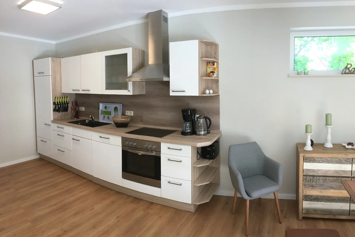 Wir haben die Ferienwohnung Barrierefrei gestaltet und Allergikerfreundlich eingerichtet. Sie besteht aus einem grosszügigen offenen Wohn- und Küchenbereich mit gemütlicher Couchlandschaft, Flachbildfernseher, Musikanlage, Kamin, Essbereich und einer modernen komplett eingerichteten Küche. Vom Wohnzimmer aus, gelangen Sie ebenerdig auf die nach Süden ausgerichtete Sonnenterrasse.
