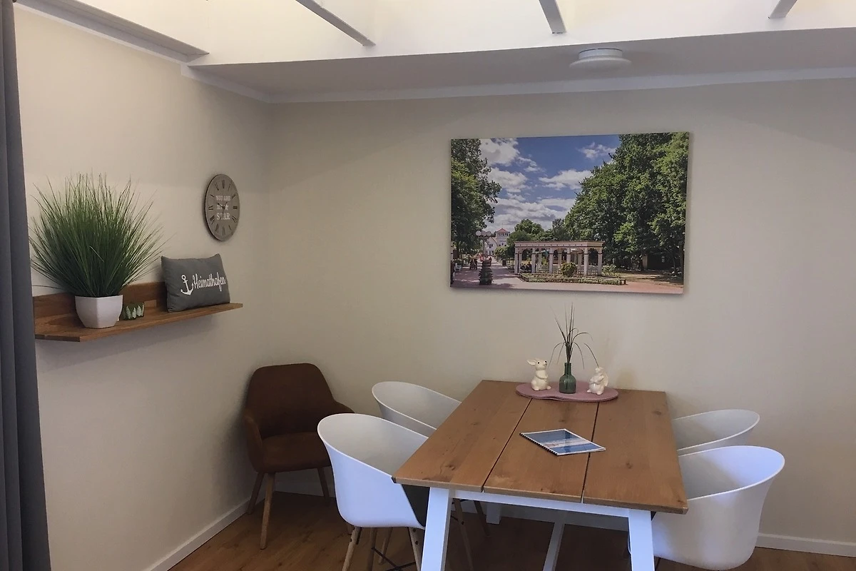 Unsere Ferienwohnung Seeblume ( 60 qm²) für 2-6 Personen befindet sich im oberen Bereich des Strandhauses Seeperle und ist ca. 60 sek. vom feinsandigen Strand und der Ostsee entfernt.