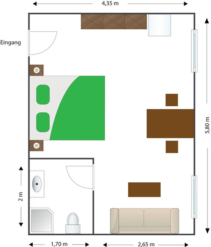 Sie verfügt ausdrücklich nicht über eine Küchenzeile!