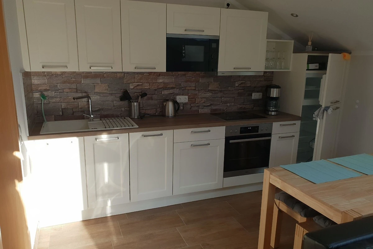 Die Ferienwohnung besteht aus Wohn/Küchenbereich, Bad und Schlafzimmer. Die Wohnung ist eine Nichtraucherwohnung. Die Wohnung verfügt im Wohnbereich eine Doppelausziehchouch, Flachbild-Tv, Kleiderständer, Tischchen. Im Küchenbereich ist eine Küchenzeile mit Mikrowelle, Ofen, Cerankochfelder, Teller, Kochuntensilien, Kaffeemaschine , Geschirrspühlmaschine, Kühlschrank, Gefierfach. Das WC/ Bad verfügt über eine Dusche und eine Badewanne. Schlafzimmer ist mit einem Doppelbett und genügend Schrankraum eingerichtet. Das Schlafzimmer hat einen eigenen kleinen Flat-Tv.