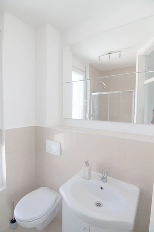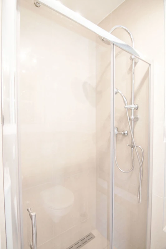 Auf beiden Stockwerken befindet sich ein schönes Bad, mit geschmackvollen Fliesen bis zum Boden, einer geräumigen Dusche und einem WC.
