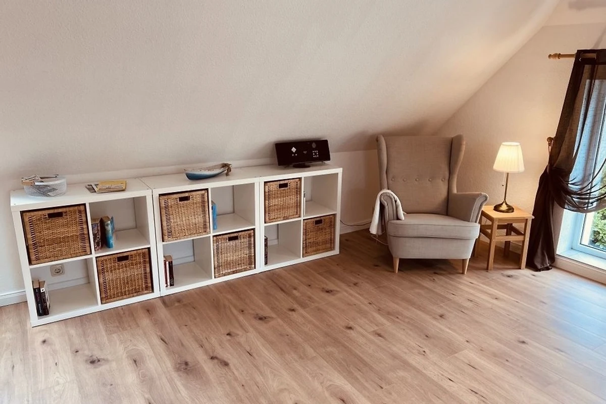 Die Ferienwohnung im Ferienhaus Garz bietet Ihnen 110m² verteilt auf 2 Etagen. Für bis zu 4 Gäste bieten wir Ihnen 2 Schlafzimmer mit Flachbild TV, 1 Wohnzimmer mit 50 Zoll Flachbild TV, 1 grosse Küche mit Backofen, Ceranherd, grossen Kühlschrank, Geschirrspüler, Waschmaschine, Kafffemaschiene und Kaffeepadmaschiene, 2 Vollbäder und eine Terrasse mit Sitzmöbeln.