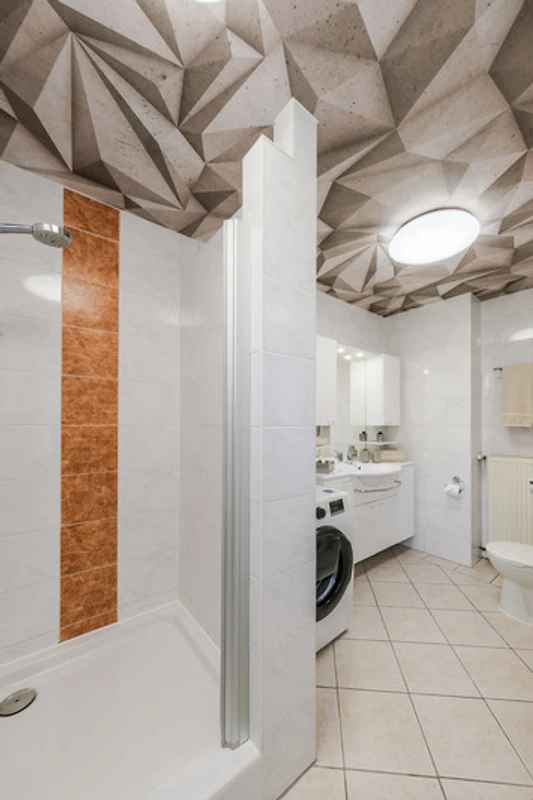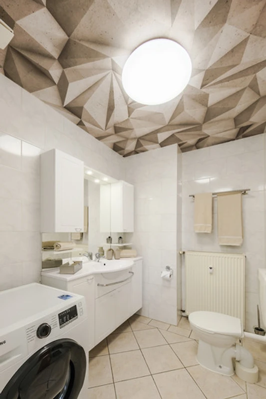 Im Bad mit Dusche, Waschtisch und WC, können Sie auch eine Waschmaschine nutzen.