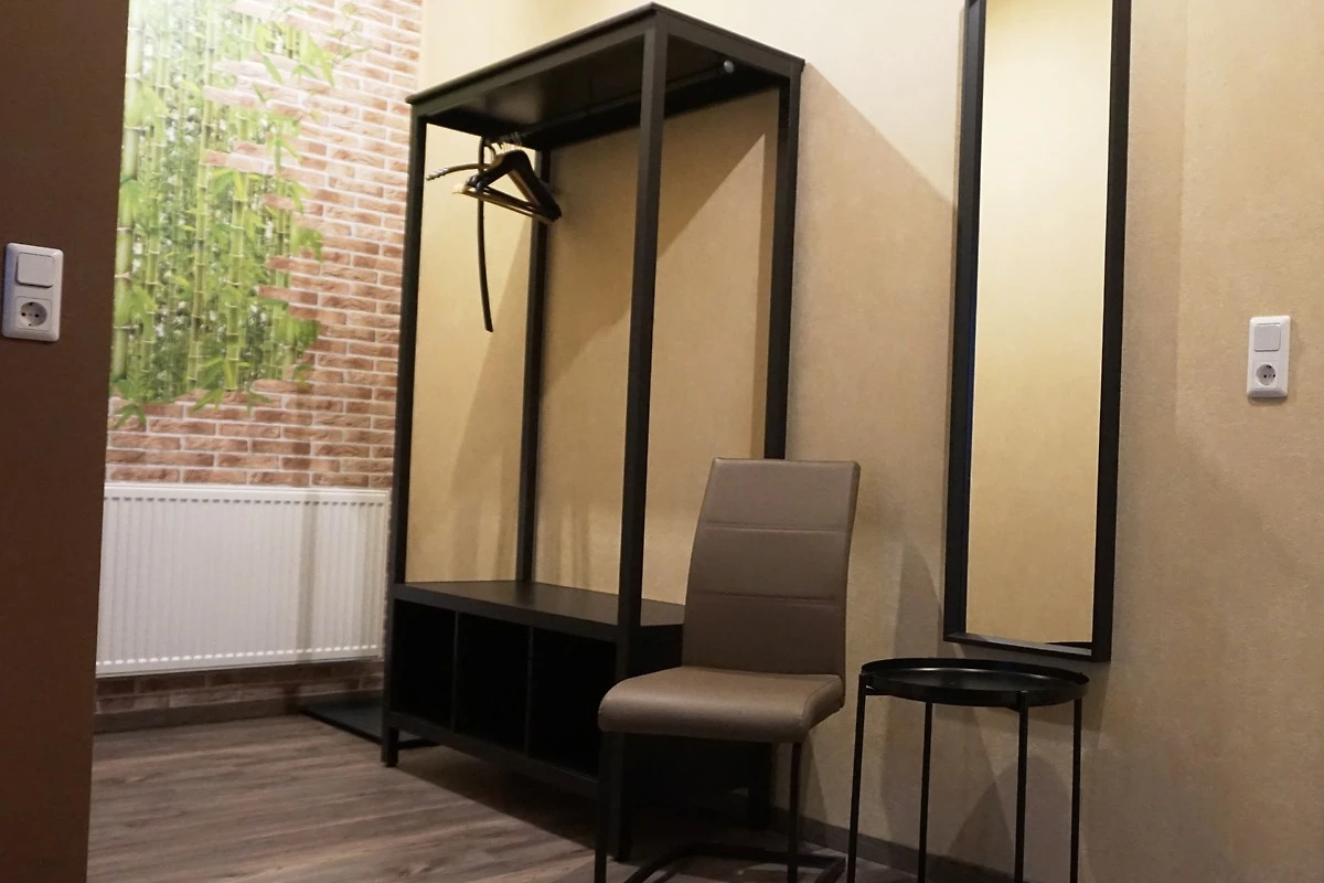 Die Wohnung verfügt über ein Schlafzimmer mit grossem Doppelboxspringbett mit wählbarer Matratzenhärte, eine grosszügige Wohnlandschaft mit zusätzlicher Bettfunktion, eine moderne vollständig eingerichtete Küche sowie ein Badezimmer mit Dusche und WC.