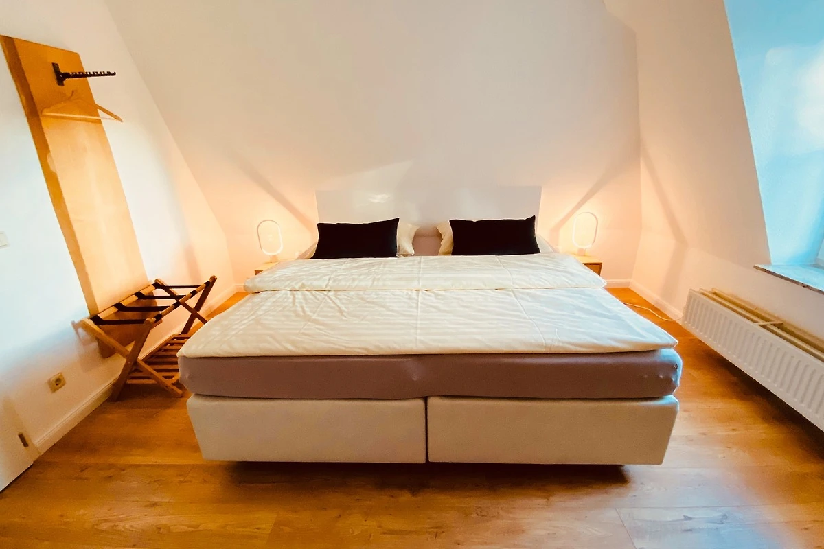 In ersten Schlafraum finden Sie ein grosses, bequemes Boxspringbett (200x200) - im zweiten Schlafraum zwei Boxspringbetten (100x200).