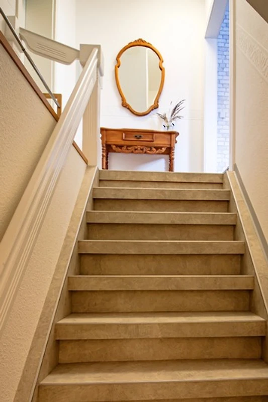 Zu beachten: Unsere recht steile Original-Treppe.