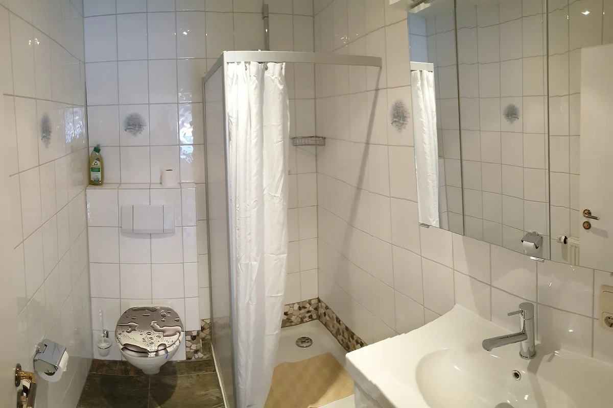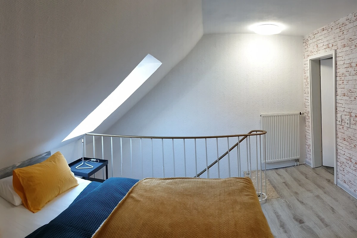 Über zwei Stufen von Aussen erreichbar, innerhalb der Wohnung befindet sich der Wohn/Essbereich im Erdgeschoss, der Schlafbereich sowie das Bad in der ersten Etage. Smart-TV vorhanden ( Amazon prime video, Netflix & Co