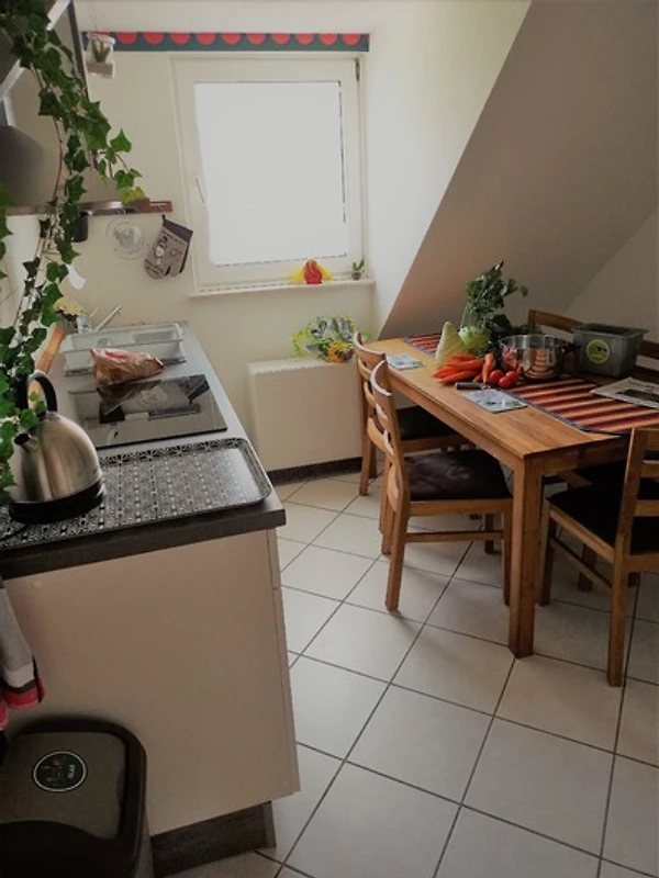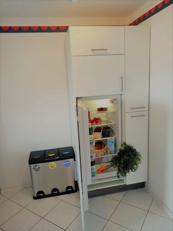 Die Küche ist ausgestattet mit Geschirr usw. für bis zu 5 Personen. Den Abwasch erledigt ein Geschirrspüler.