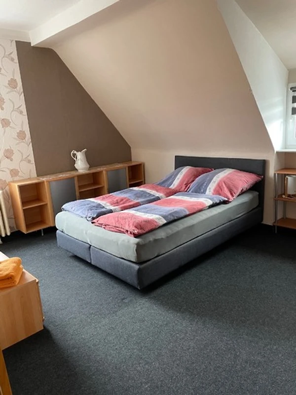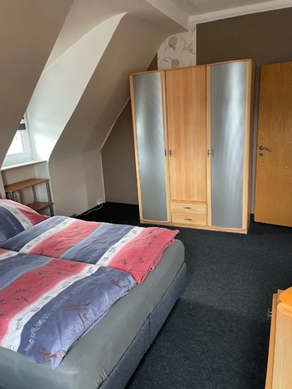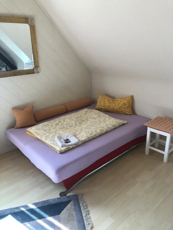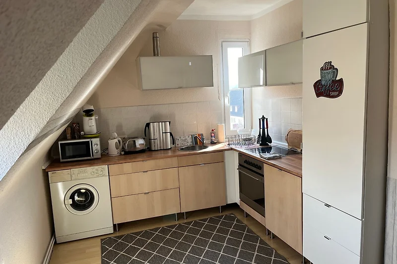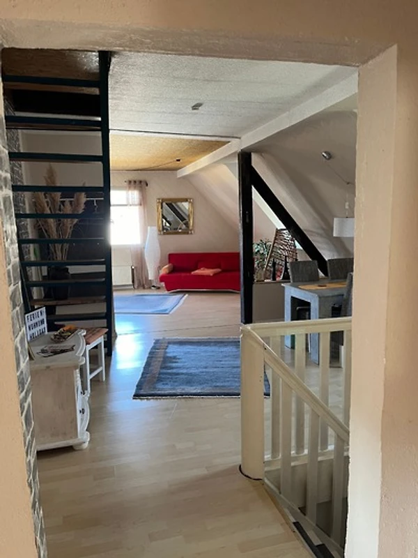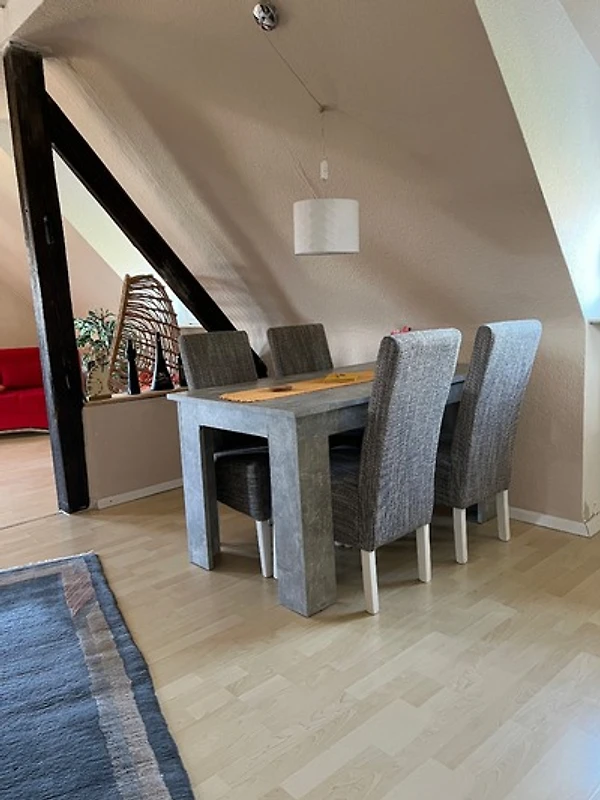 Unsere helle, liebevoll eingerichtete Ferienwohnung im Dachgeschoss hat eine Wohnfläche von 90qm und bietet Platz für bis zu 5 Personen!