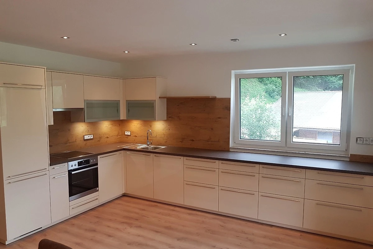 Von der Wohnküche gelangen Sie direkt auf die Wind-und wettergeschützte Loggia, wo Sie die Seele paumeln lassen.