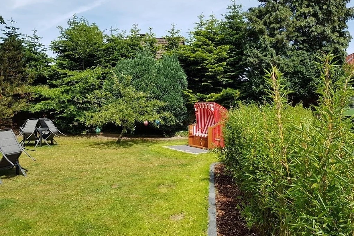 Das Haus Kogge verfügt zudem über einen weitläufigen Garten mit grosser Liegewiese, mehreren Sitzmöglichkeiten und einem eingewachsenen Baumbestand. Der vorhandene Strandkorb lädt zum besonders gemütlichen Verweilen ein.