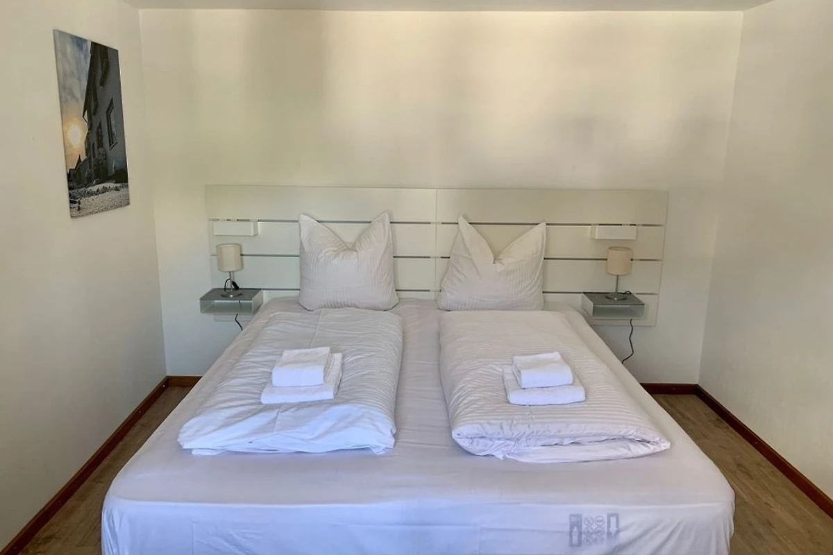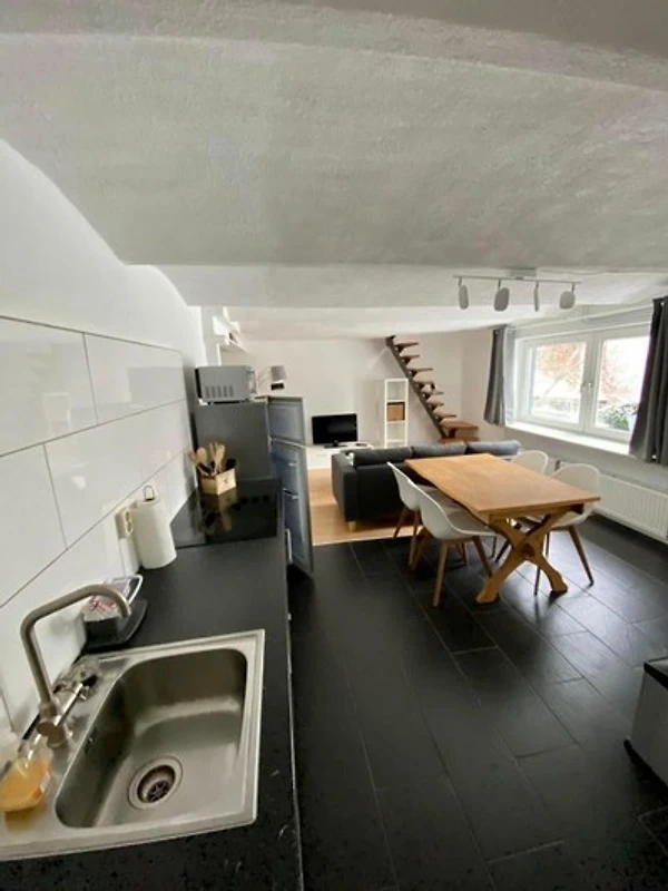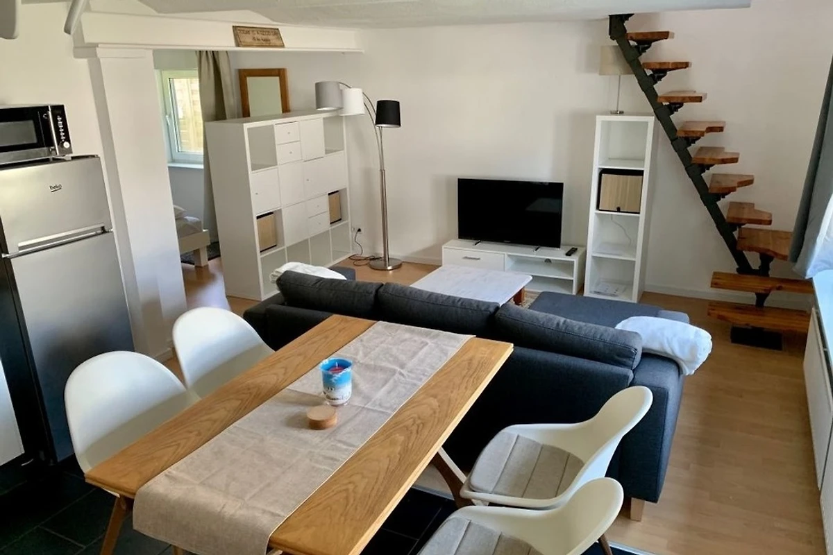 Die Ferienwohnung wurde erst kürzlich teilsaniert und bietet Schlafmöglichkeiten für 4 Personen. Es gibt einen an das Wohnzimmer angrenzenden Schlafbereich mit einem Doppelbett (140x200) sowie ein Schlafzimmer im 1. OG, welches über eine Raumspartreppe zu erreichen ist. Die Wohnung hat ein Bad mit einer Dusche/Waschbecken, sowie ein extra Bad mit Toilette/Waschbecken. Die voll ausgestattete Küche runden die Wohnung ab. Zu der Wohnung gehört ein zugeordneter Parkplatz.