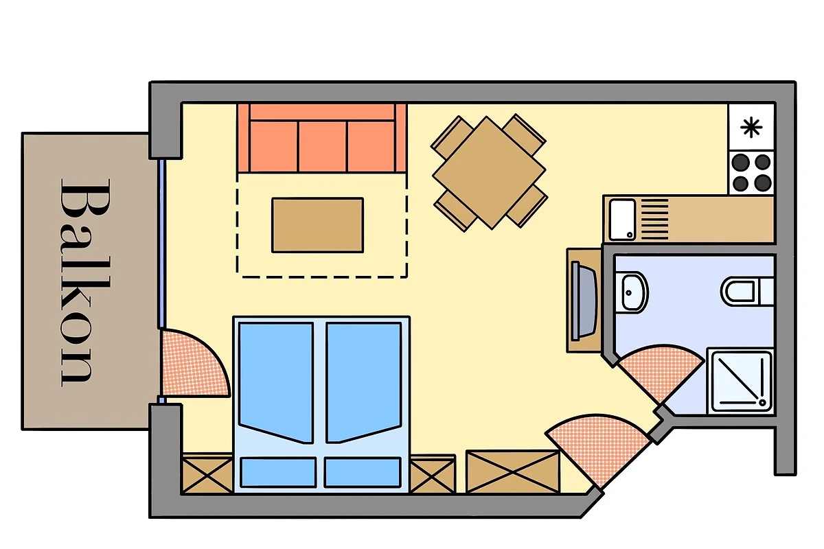 In den 45 bis 90 m² grossen Ferienwohnungen bieten wir unseren Gästen hochwertig eingerichtete Wohn- und Schlafzimmer, sowie ein geräumiges Duschbad.