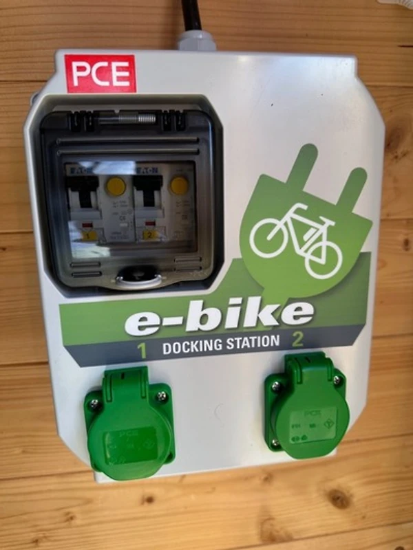 Das Aufladen von Elektrofahrzeugen, ausser E-Bikes, ist ausschliesslich an der dafür vorgesehenen Wallbox am Parkplatz erlaubt. Für das Abstellen von Fahrrädern oder Kinderwagen etc. steht Ihnen eine eigene kleine abschliessbare Blockhütte zur Verfügung. In dieser ist eine E-Ladestation für E-Bikes.