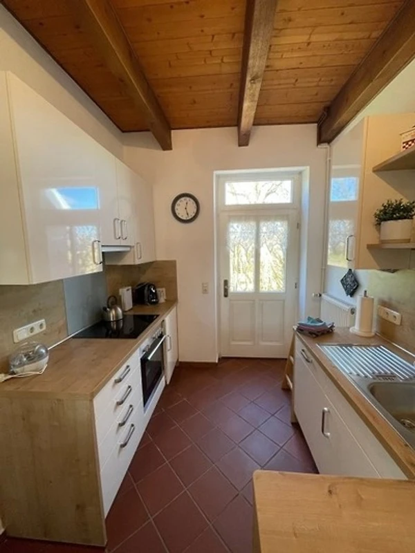 Der Wohnbereich ist gemütlich mit zum Teil antiken Möbeln eingerichtet. Ihnen stehen Sat-TV , eine Micro-Stereo-Anlage und WLAN zur Verfügung. Die Küche erfüllt alle Ansprüche an modernen Komfort. Ausgestattet mit Ceranfeld, Backofen, Kühlschrank, Spülmaschine und reichlich Stauraum. Das Badezimmer befindet sich im Erdgeschoss und ist ebenfalls komplett modernisiert.